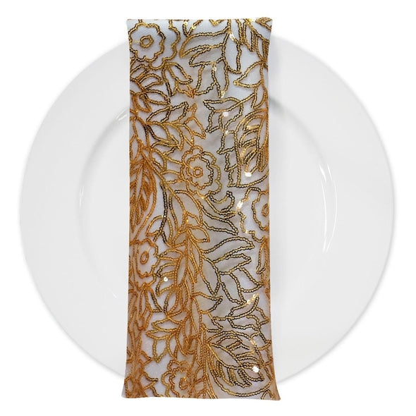 Fiori Leaf Sequins (w/ Poly Lining) Table Napkin in Gold