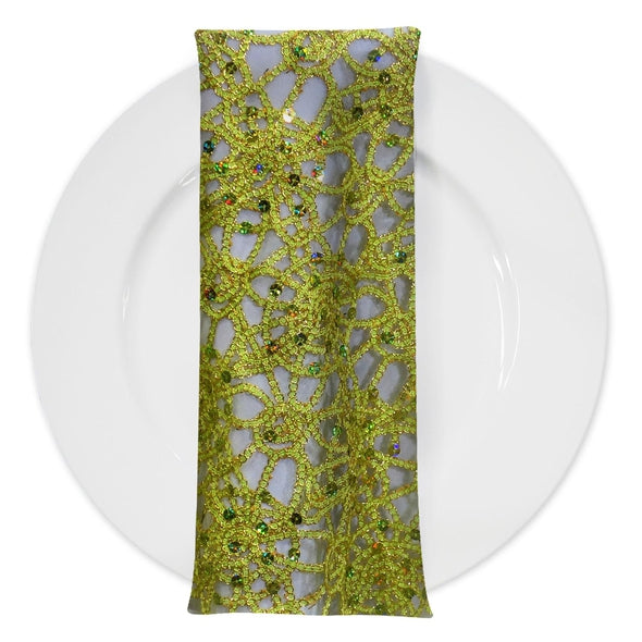 Flower Chain Lace (w/ Poly Lining) Table Napkin in Lime and Gold