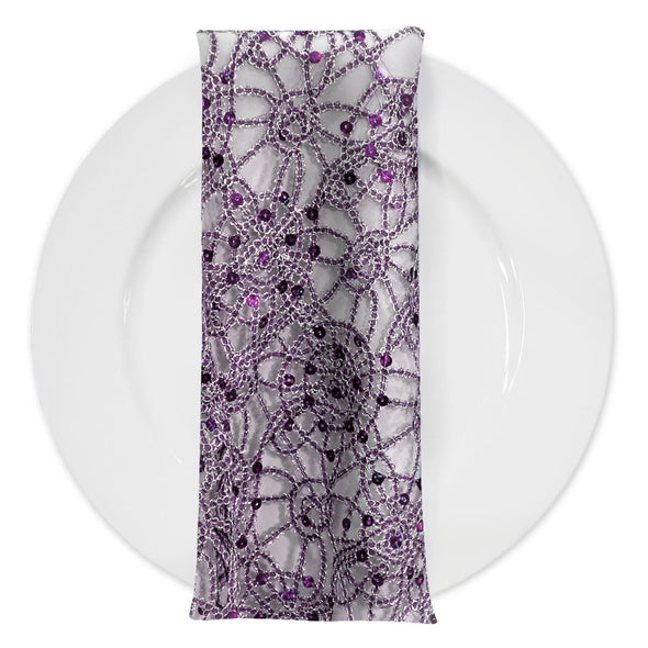 Flower Chain Lace (w/ Poly Lining) Table Napkin in Purple and Silver