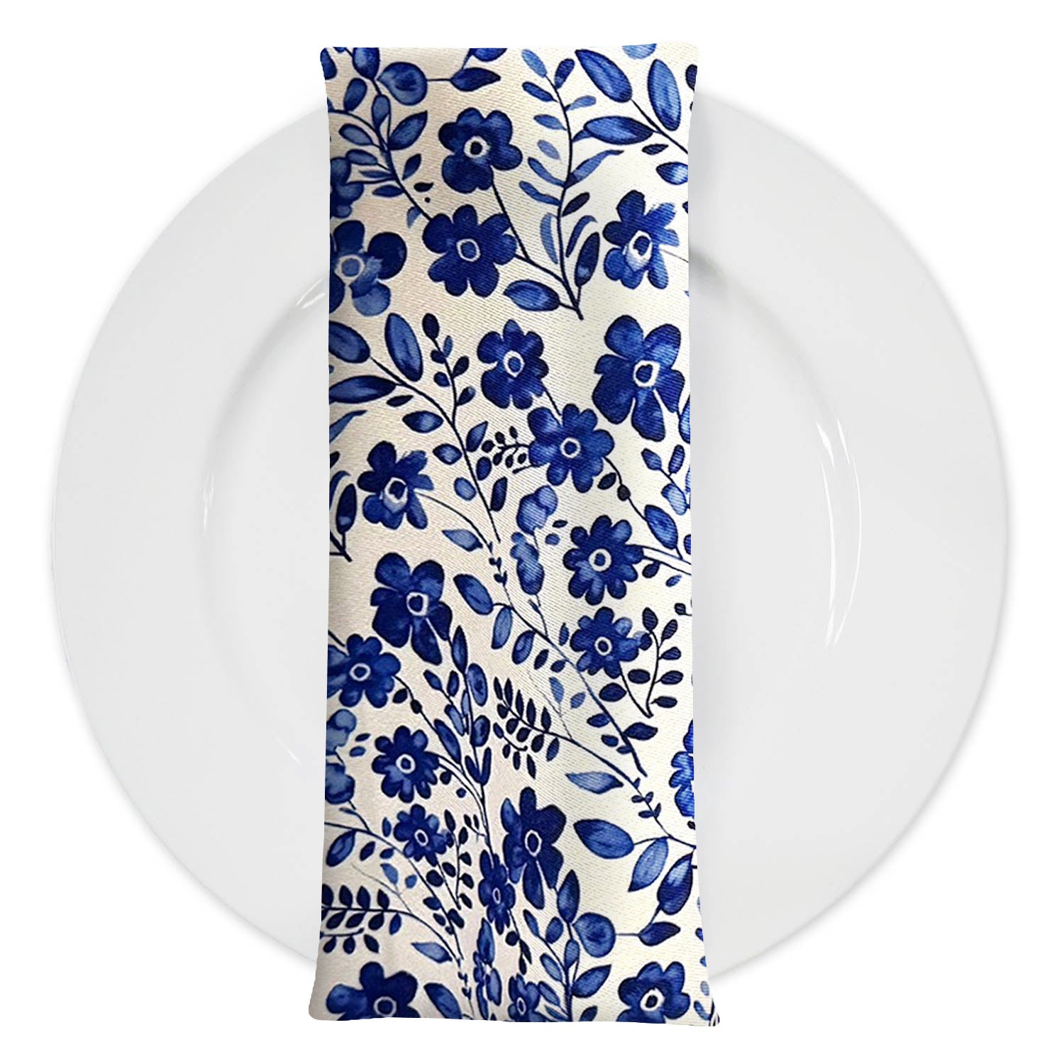 Elevate your event décor with our Scarlet (Poly Print) fabric, featuring a stunning blue floral design on a white background. Perfect for weddings, parties, and upscale events, it's available as tablecloths, runners, napkins, and drapes. Durable and versatile, it's ideal for rental companies and event professionals seeking timeless elegance.