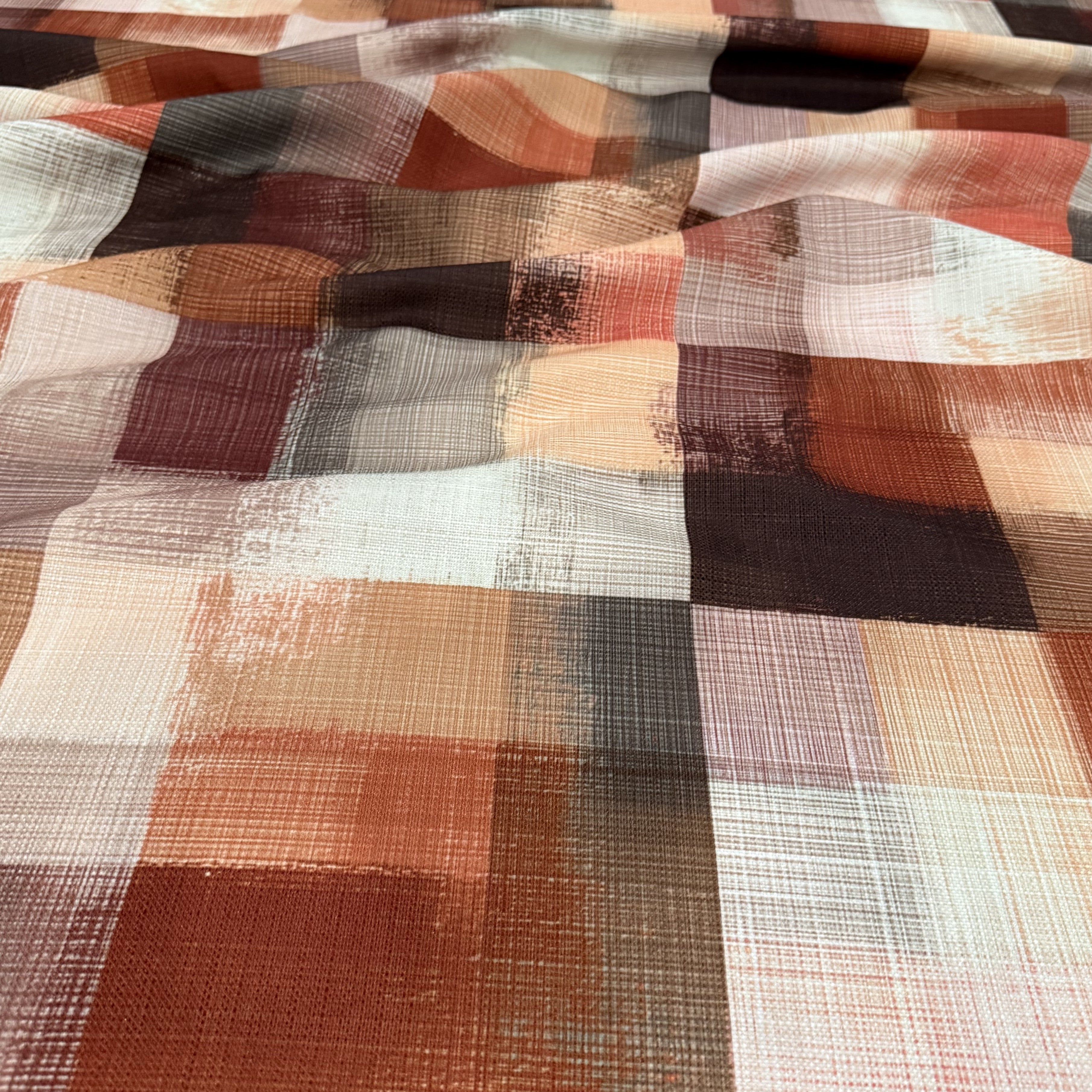 Fabric Collection: Abstract Plaid (Slub Print) is a high-quality slubby linen fabric featuring a modern abstract plaid pattern with rich texture and elegant visual depth. Perfect for tablecloths, table runners, napkins, and drapery, it brings style, sophistication, and versatility to any event setting.