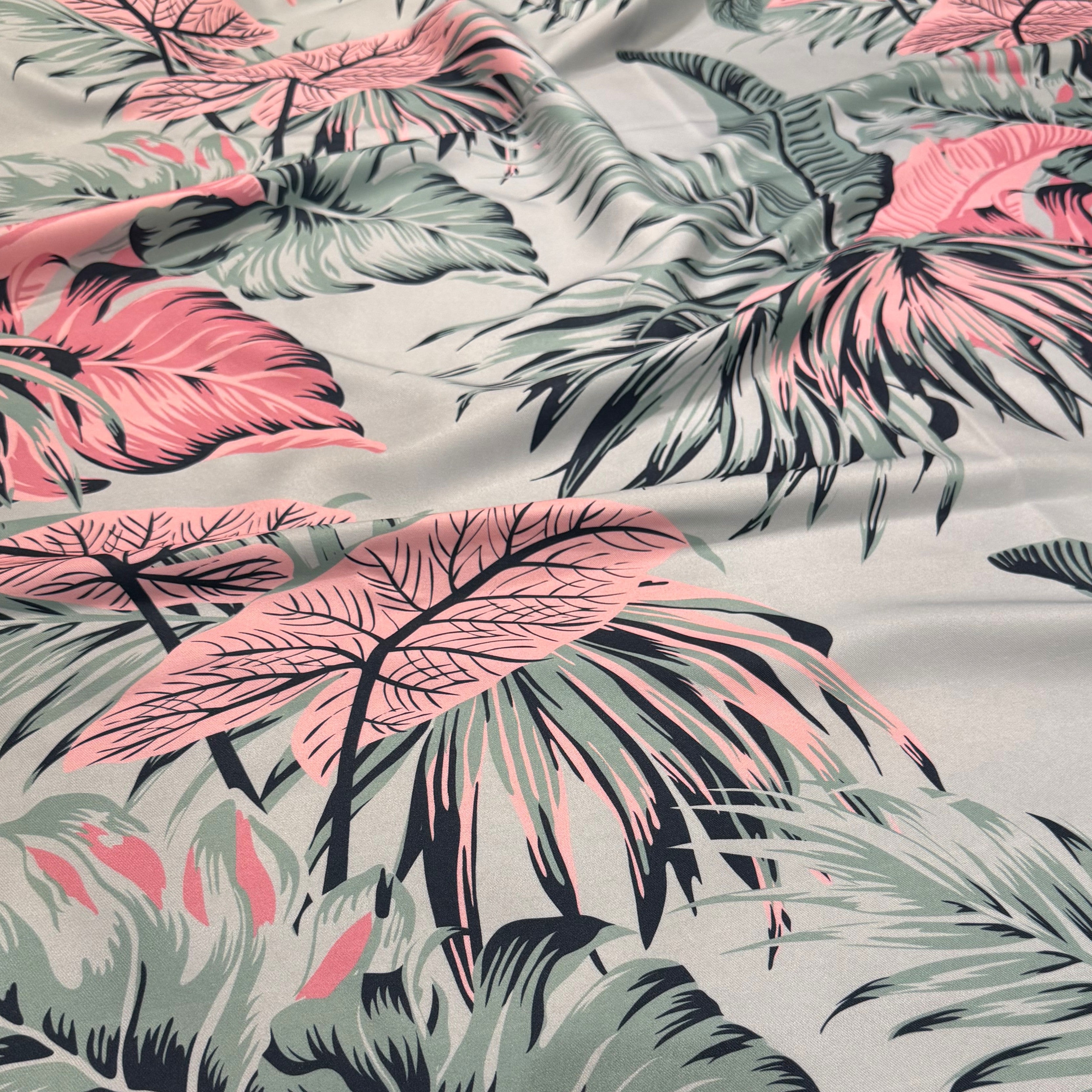 Fabric Collection: Fresh and vibrant, our Palmetto (Poly Print) features bold pink and green tropical leaves printed on durable polyester twill base. Perfect for tablecloths, runners, napkins, and drapes, it’s wrinkle-resistant, easy-care, and ideal for weddings, special events, hotels, and event rentals.