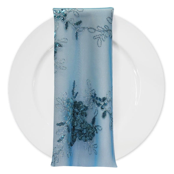 Ribbon Mesh Lace (w/ Poly Lining) Table Napkin in Turquoise