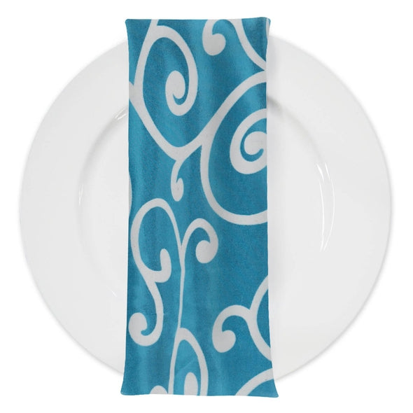 Swirl Flocking Taffeta Table Napkins in Silver and Turquoise