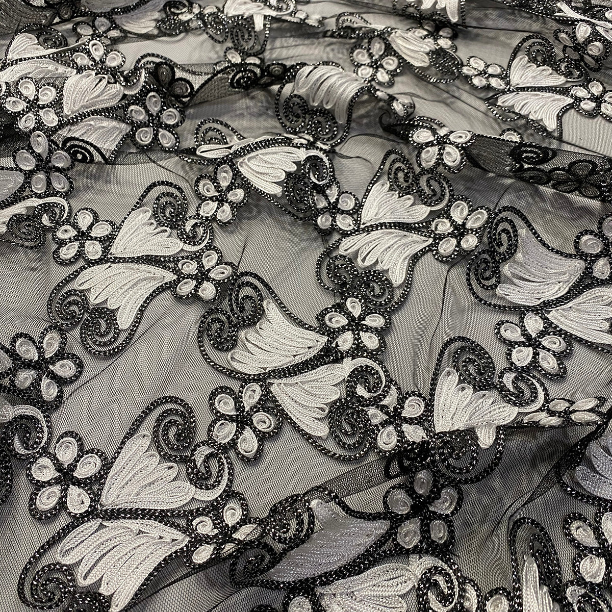 Fabric Collection: This material has a mesh base w/ a unique "butterfly" embroidered design throughout.