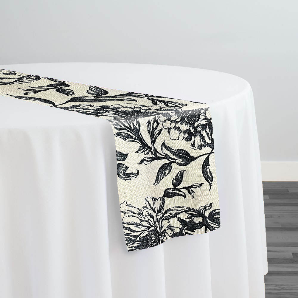 Artistry Bloom (Slub Print) Table Runner in Taupe / Black