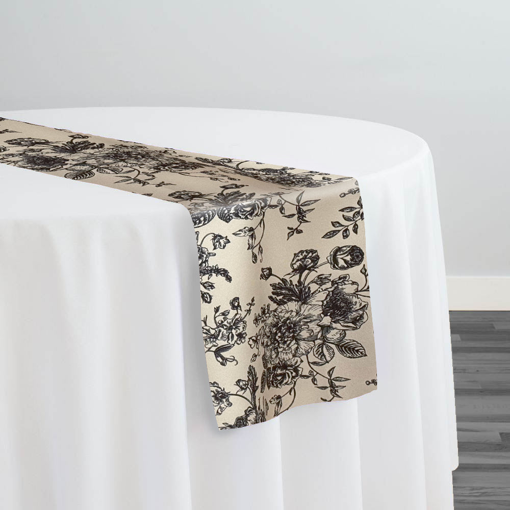 French Toile (Poly Print) Table Runner in Black / Taupe