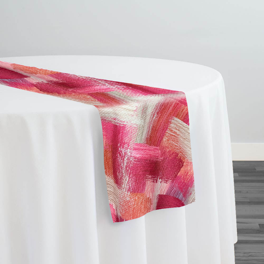 Fabric Collection: Brushstroke (Slub Print) is a premium slubby linen fabric featuring a modern brushstroke pattern that brings depth, texture, and artistic flair to any event design. Perfect for tablecloths, table runners, napkins, and drapery, it offers a refined look with a soft, natural handfeel and beautiful drape.