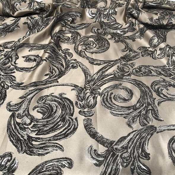 Fabric Collection: This fabric has a polyester base with metallic embroidered design in our "Florence" pattern and has a multi tone color throughout.
