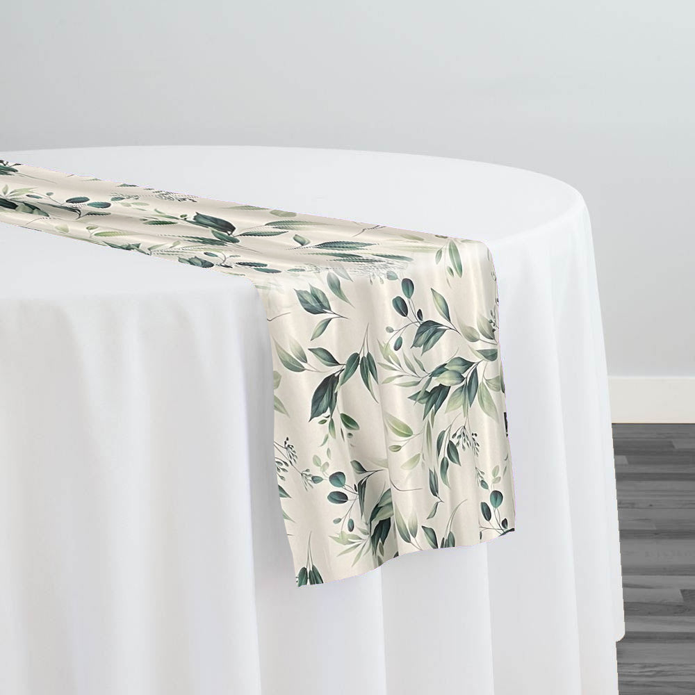Bayside Leaf (Poly Print) Table Runner in Green/White