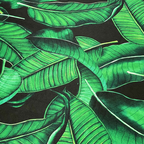 Fabric Collection: This fabric is 100% polyester base with our "Beverly" palm leaves throughout the fabric with a Black background.
