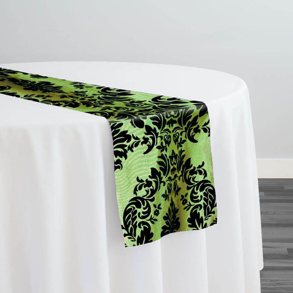Damask Flocking Taffeta Table Runner in Black on Olive