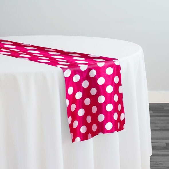 Satin Polka Dot Table Runner in White and Fuchsia