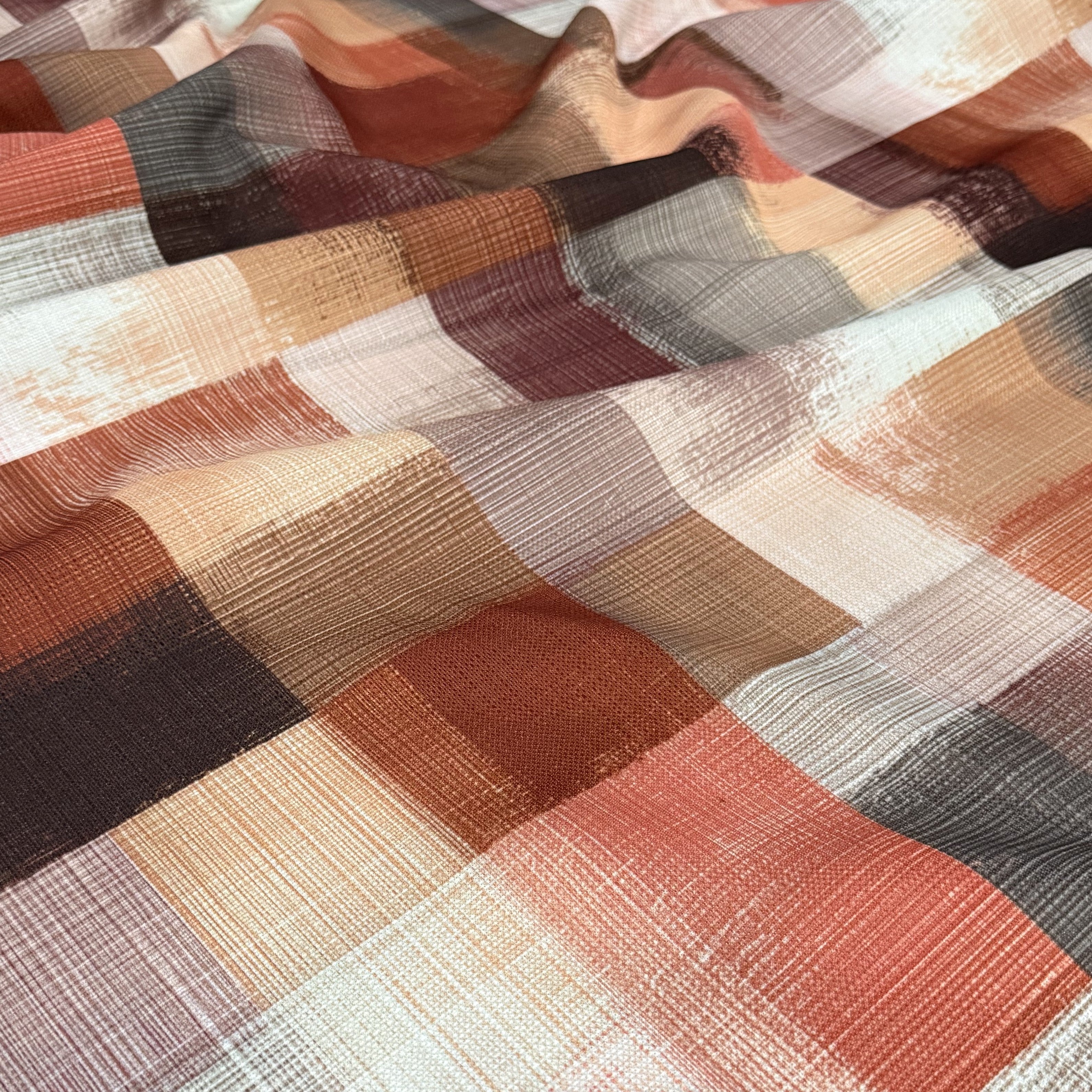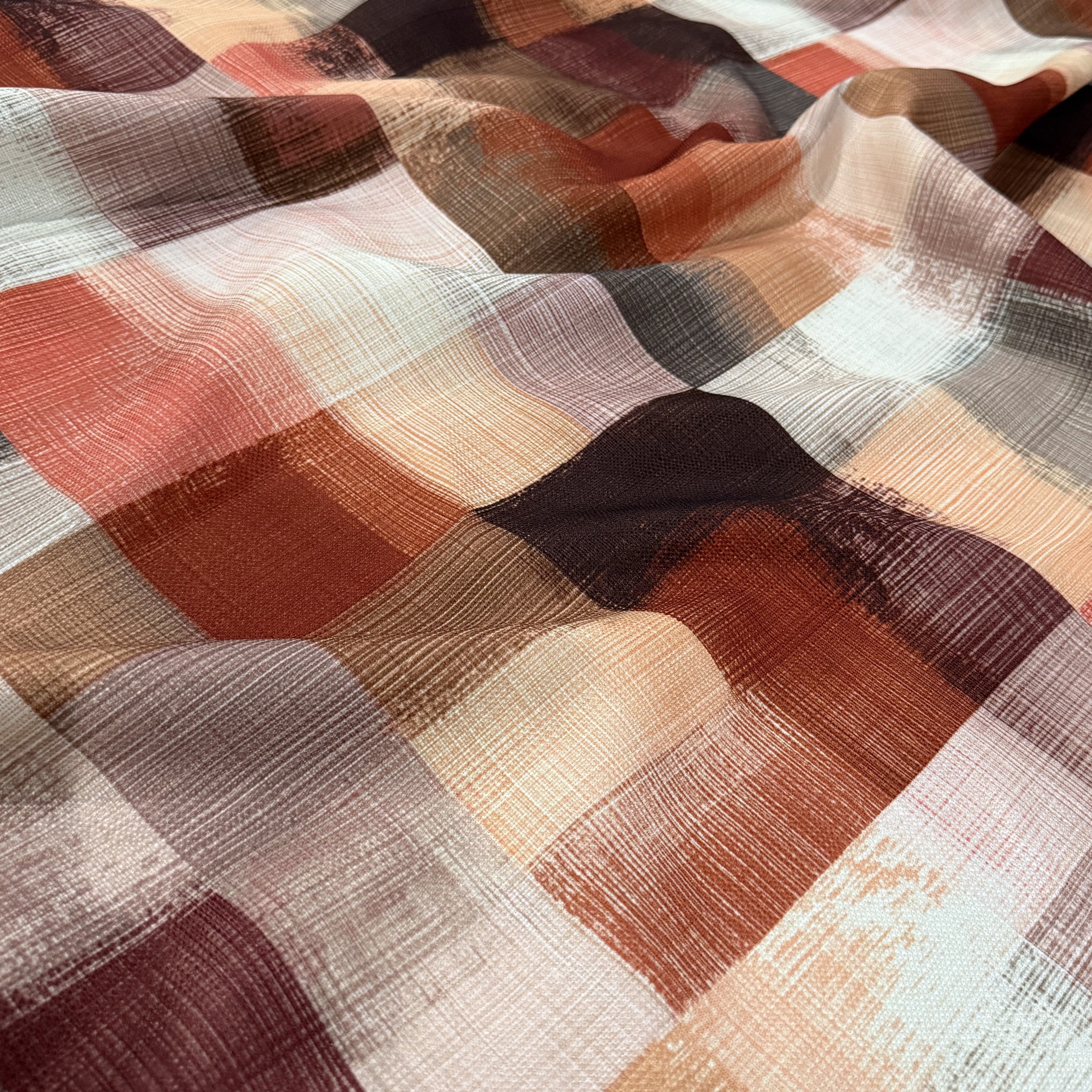 Fabric Collection: Abstract Plaid (Slub Print) is a high-quality slubby linen fabric featuring a modern abstract plaid pattern with rich texture and elegant visual depth. Perfect for tablecloths, table runners, napkins, and drapery, it brings style, sophistication, and versatility to any event setting.
