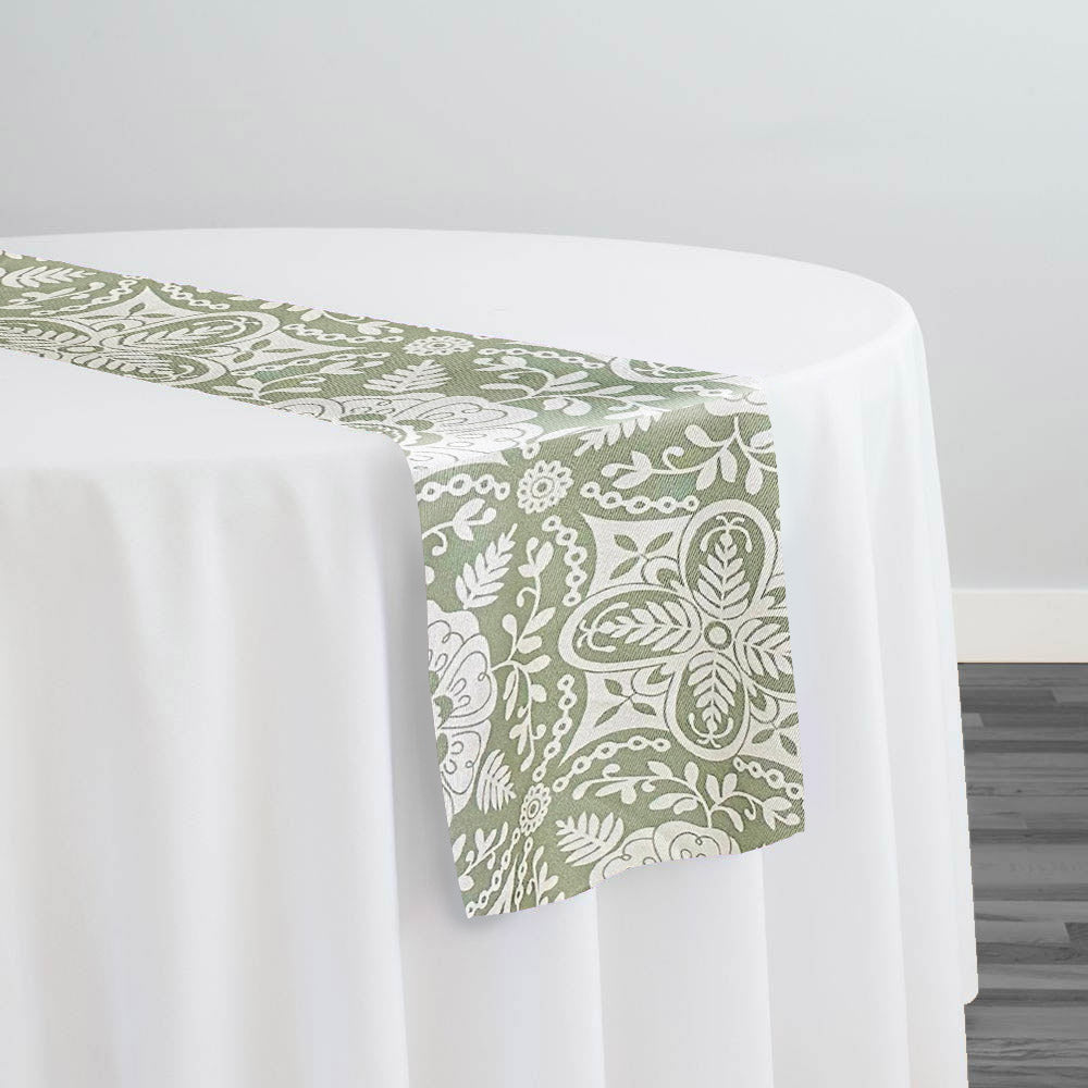 Fabric Collection: The distinctive and well-liked Moroccan-inspired pattern is featured on a durable 100% polyester twill base. It's available in numerous colors with an off-white/ivory base. This table linen is ideal for elevating the atmosphere of your upcoming event.