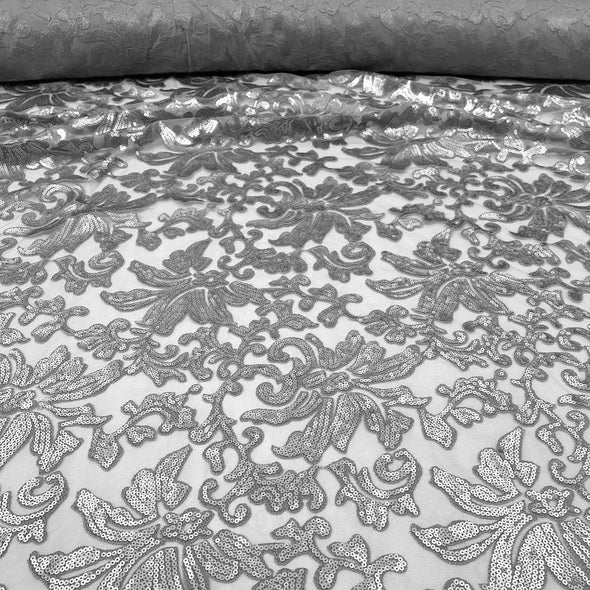 Fabric Collection: This material has a mesh/sheer base w/ sequins embroidery in our "Milan" design throughout the fabric.