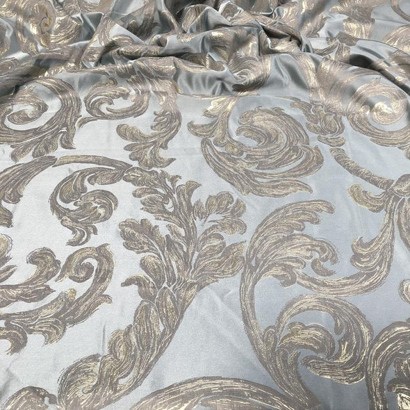 Fabric Collection: This fabric has a polyester base with metallic embroidered design in our "Florence" pattern and has a multi tone color throughout.