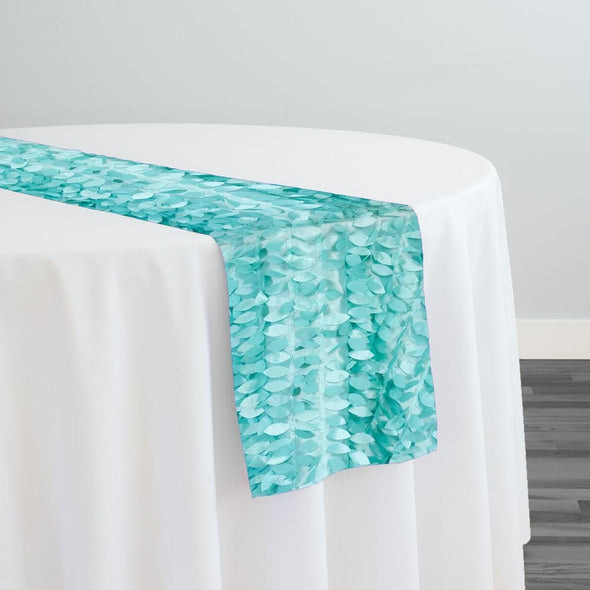 Leaf Hanging Taffeta Table Runner in Teal Green