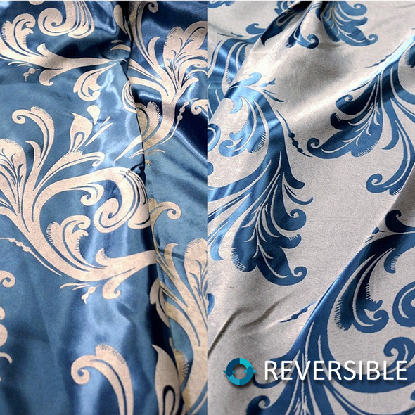 Fabric Collection: This fabric is a Polyester base with a Jacquard embroidery in our "Regal" pattern throughout material and is reversible.