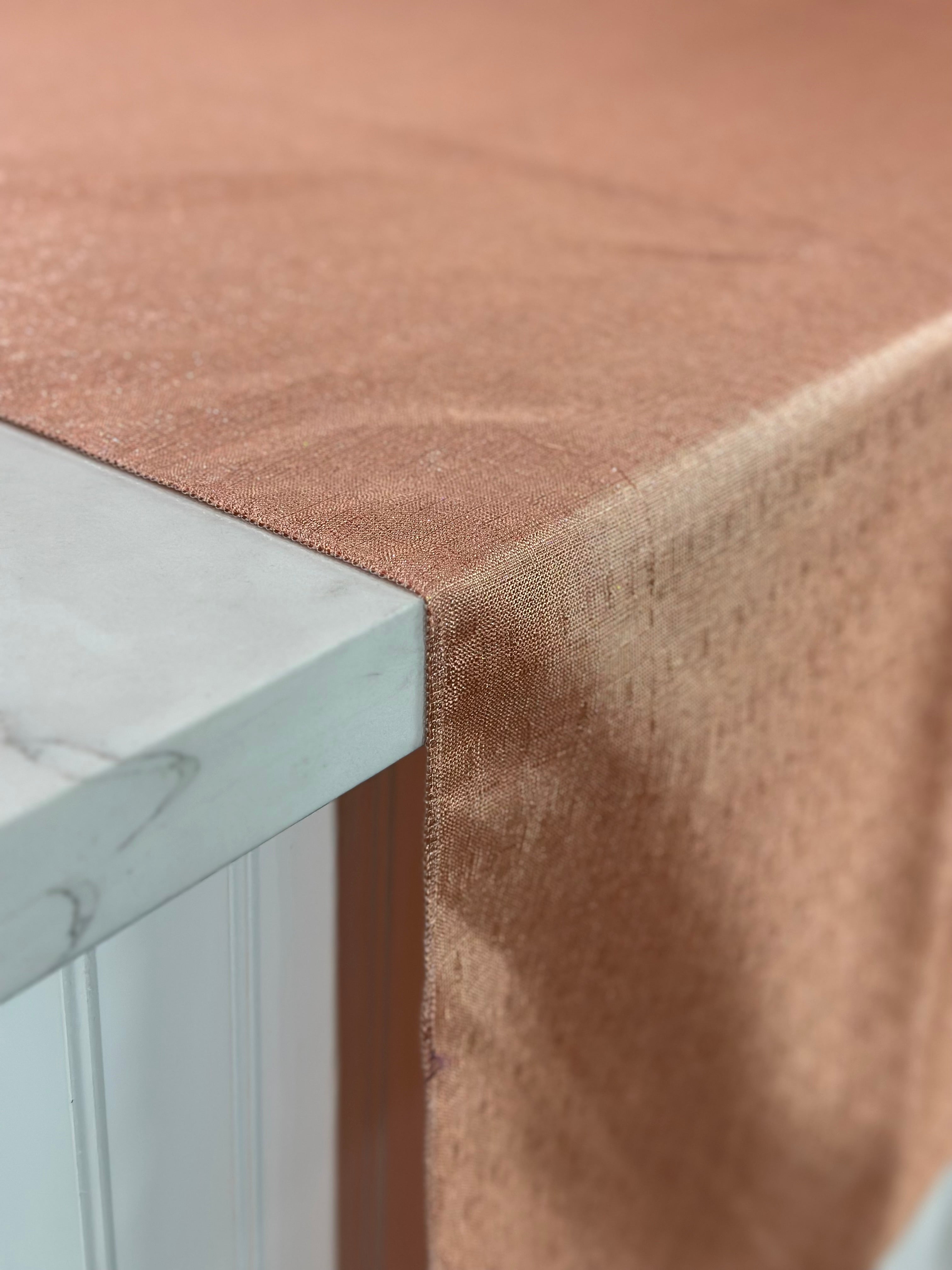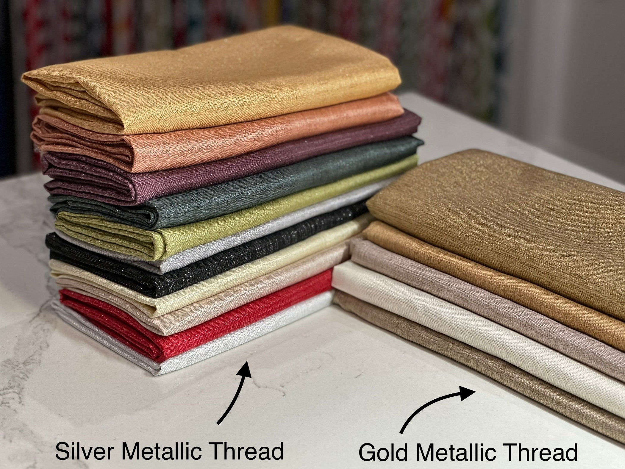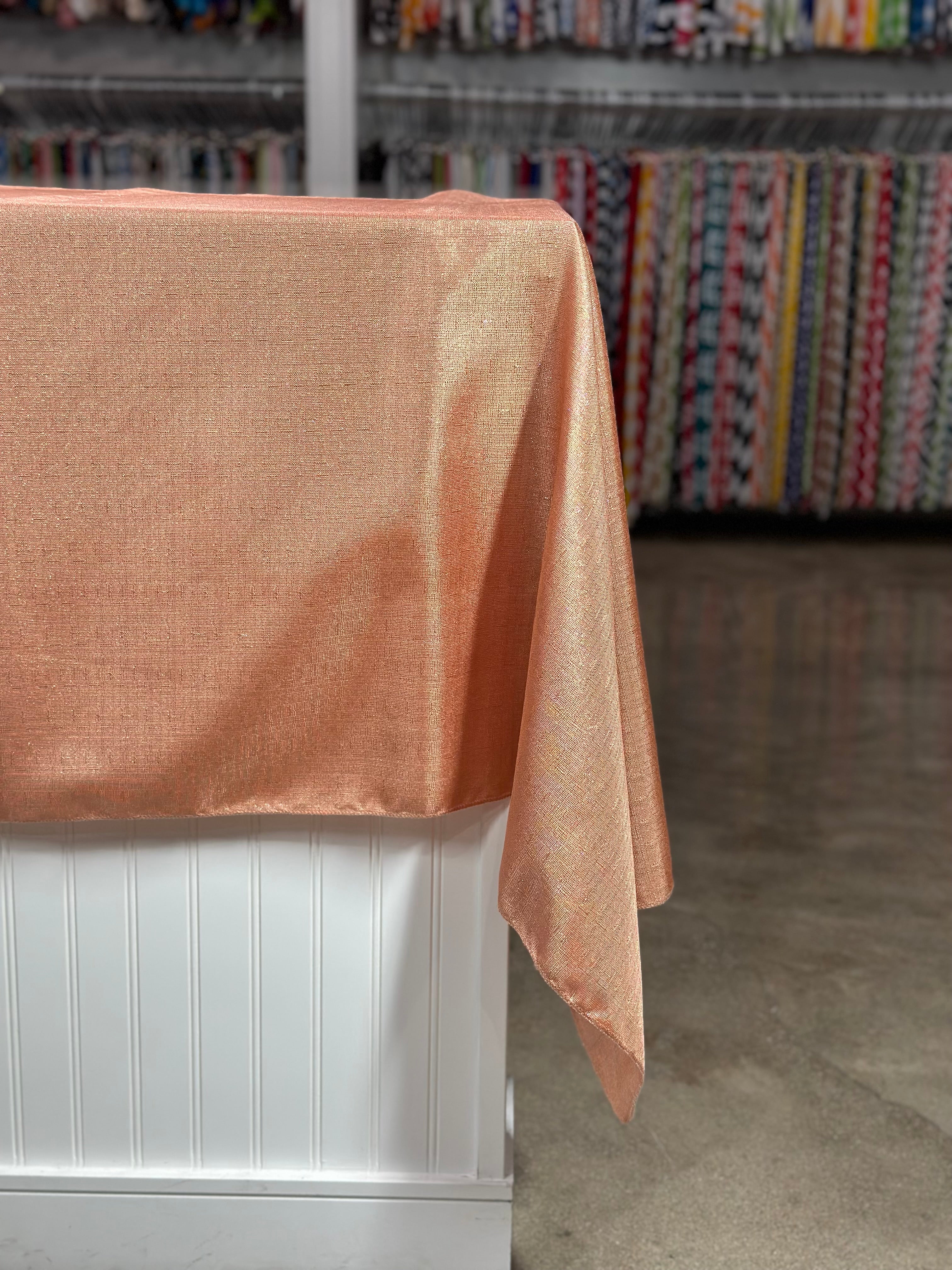 Fabric Collection: This fabric has a burlap texture/design throughout and is made from polyester so it's easy to care for. It also has metallic threading to give it an elegant upgrade vs the traditional burlap look - This fabric is in a blush color with silver metallic threading mixed in.