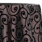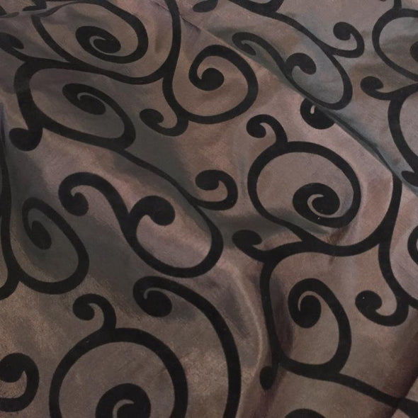 Swirl Flocking Taffeta Table Linen in Black on Brown