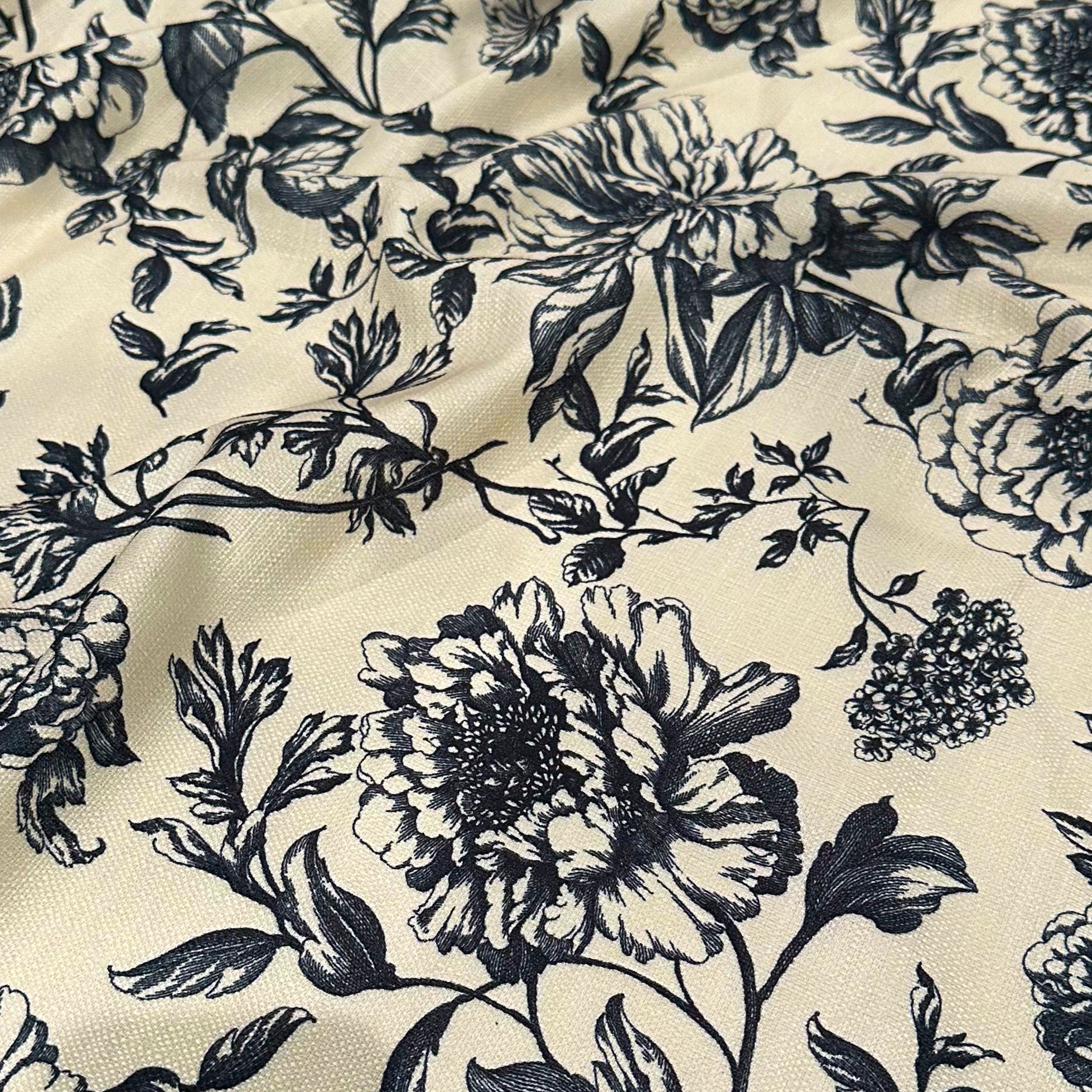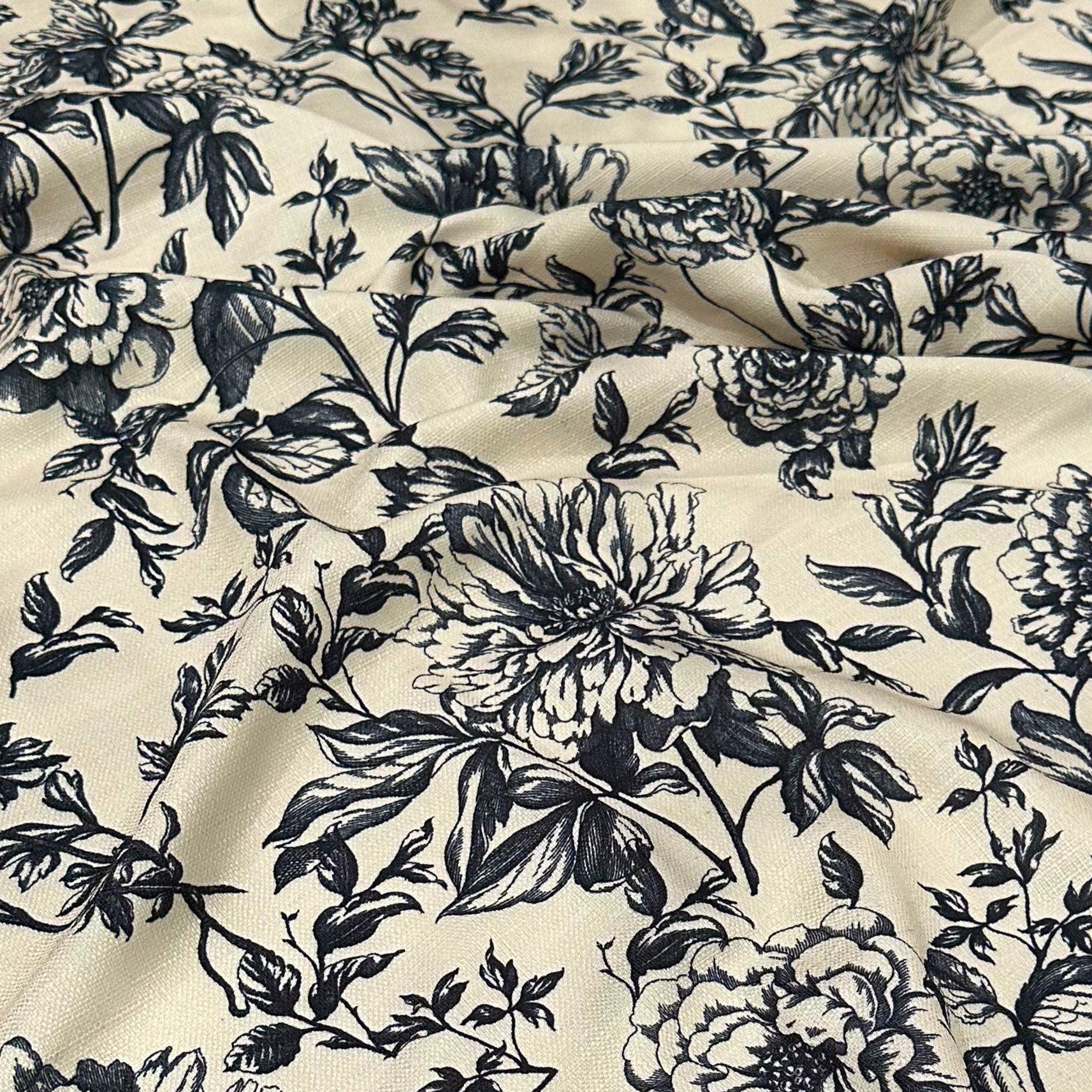 Fabric Collection: Our Artistry Bloom fabric offers a gorgeous toile de jouy vintage floral pattern on a white base. This stunning design is printed on a polyester fabric which also has a rustic slub-like textured finish.