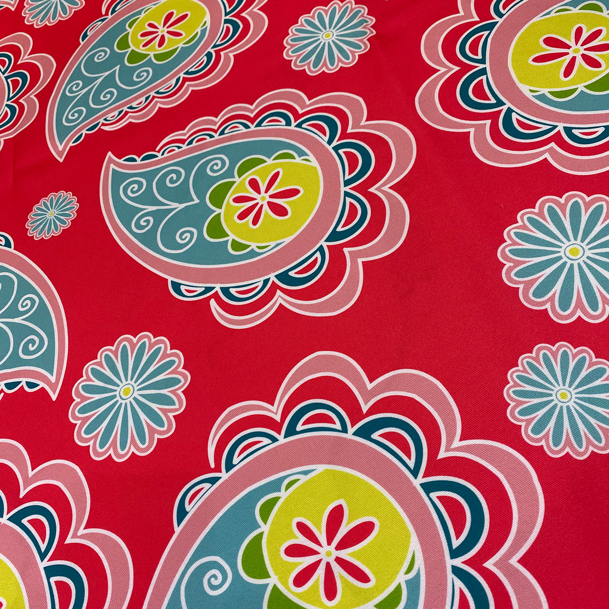 Fabric Collection: This fabric is a Polyester base with a uniquely colored paisley design throughout.