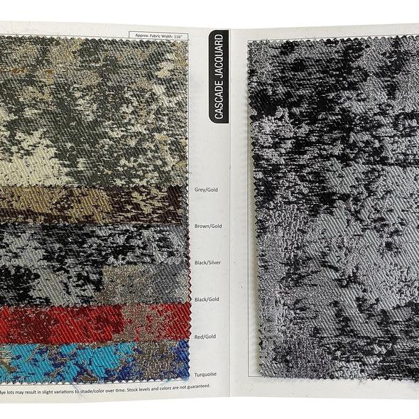 Fabric Collection: This fabric is a multi-color metallic jacquard embroidered with our Cascade print throughout.