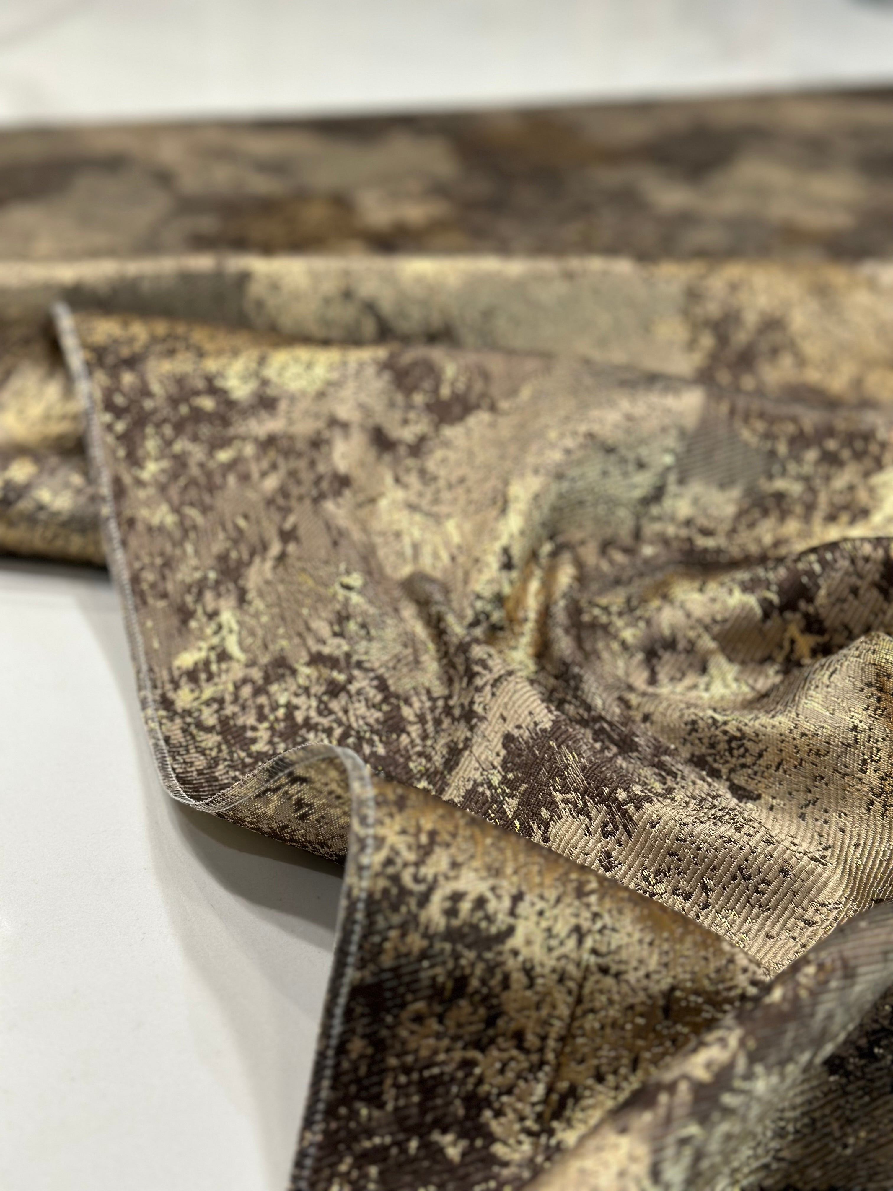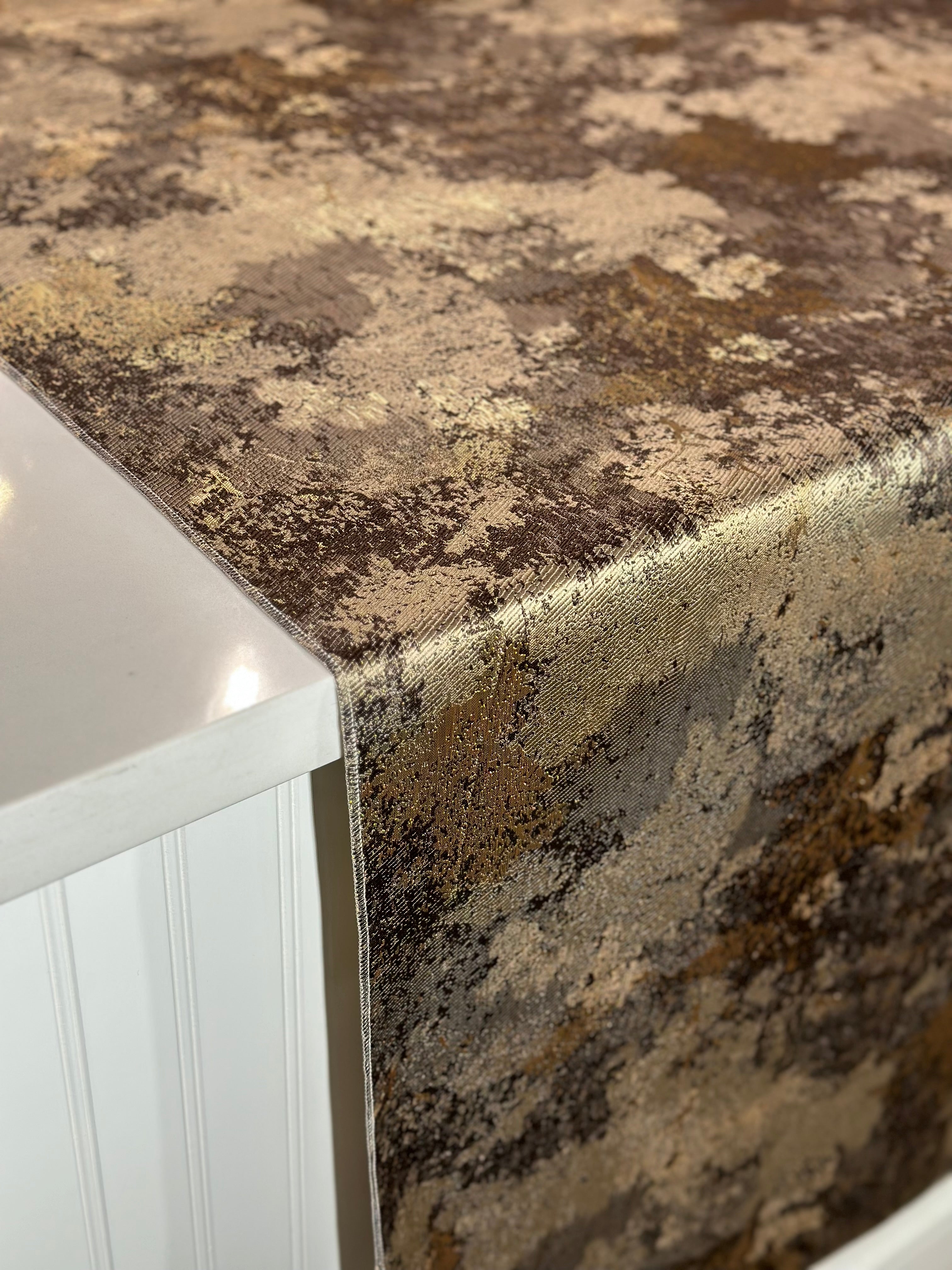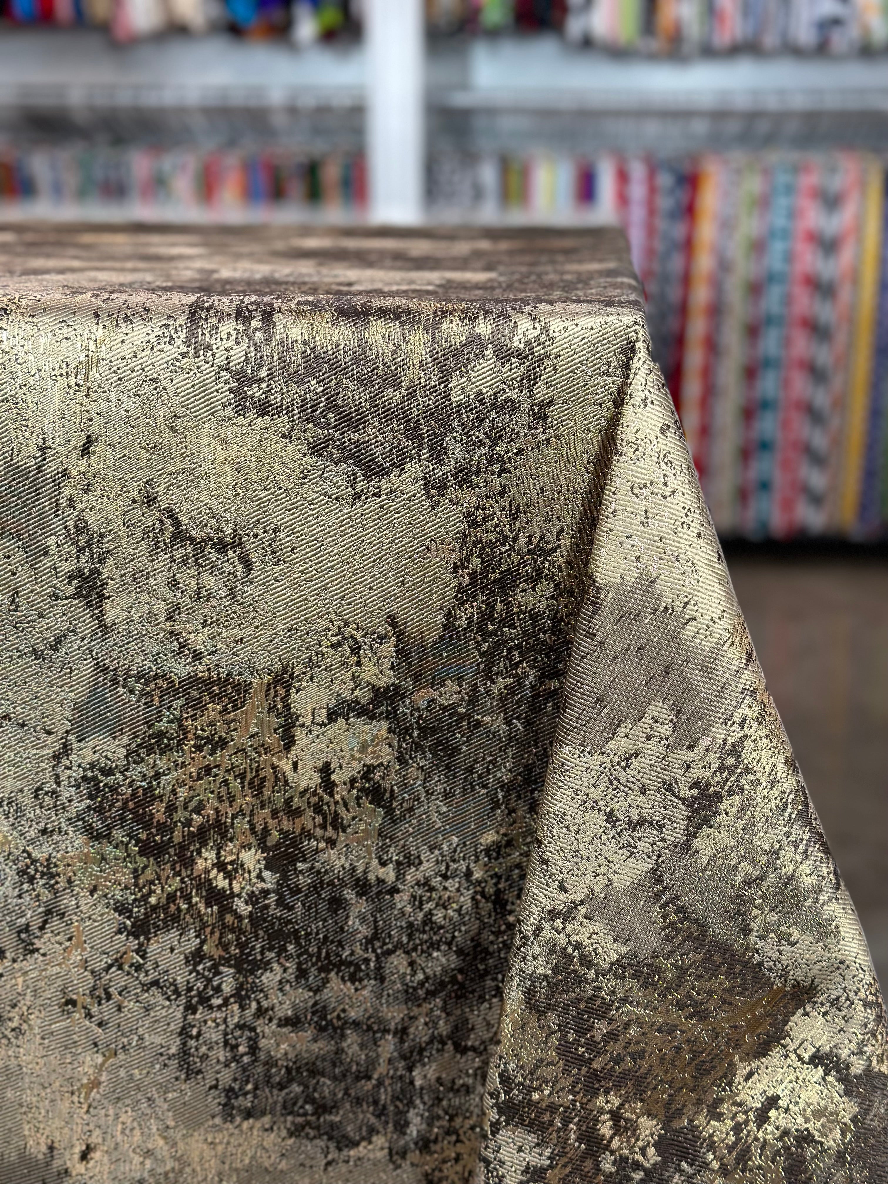 Cascade Jacquard Table Linen in Brown and Gold