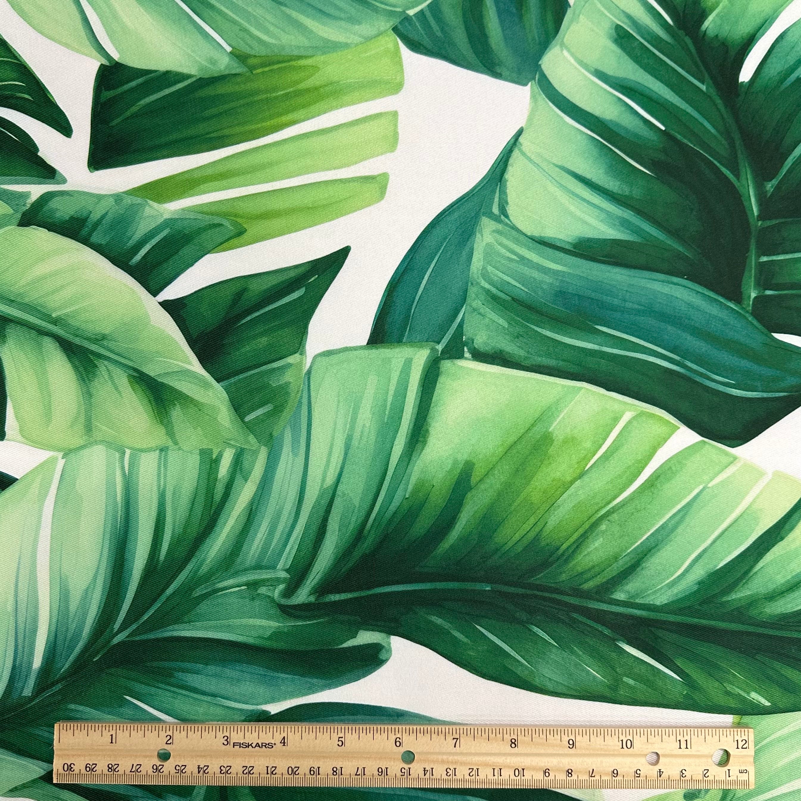Fabric Collection: This fabric is 100% polyester base with our "Melrose" palm leaves throughout the fabric with a white background.