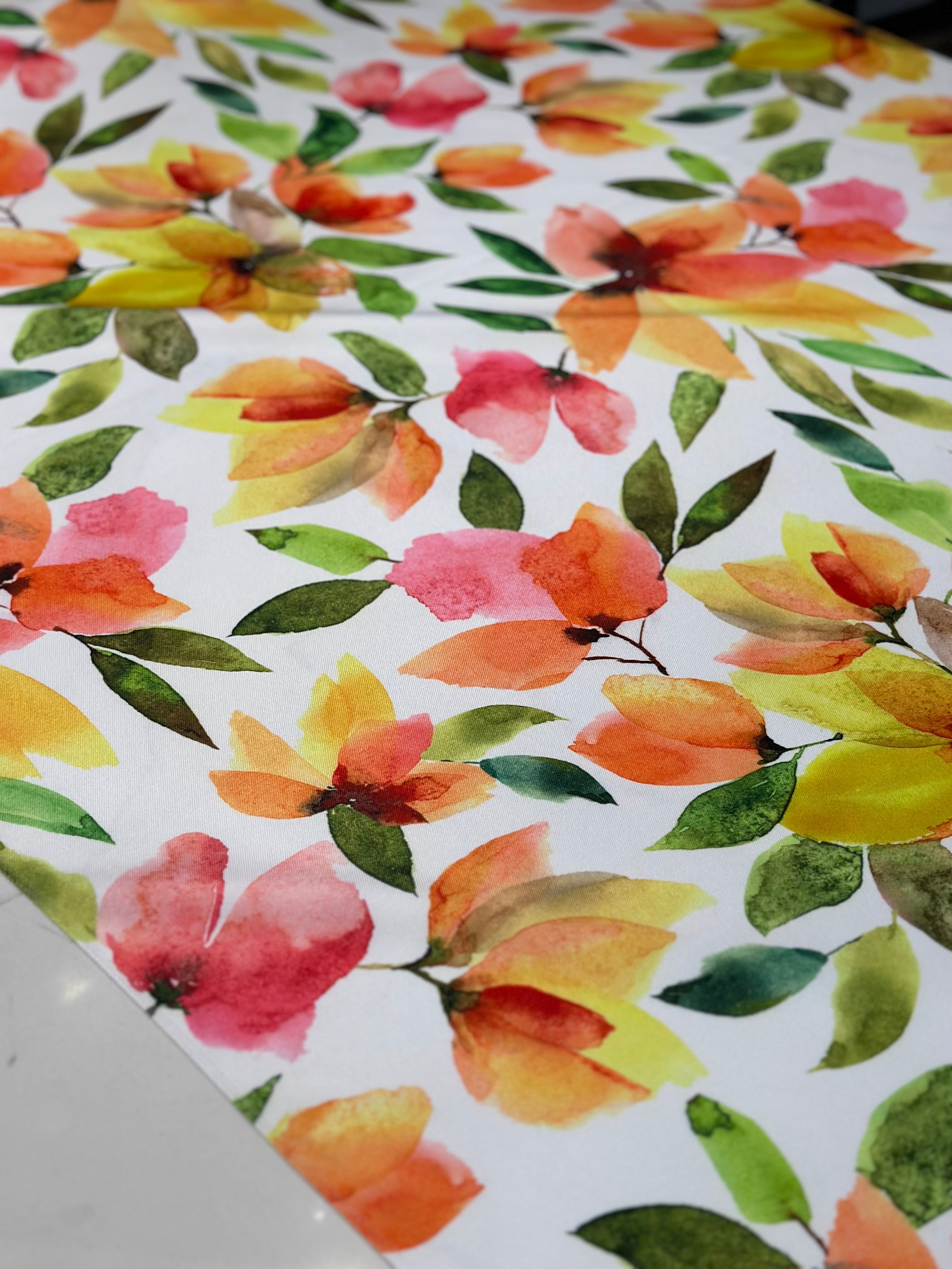Fabric Collection: This fabric is a 100% polyester base with our "Bloom Floral" print throughout.