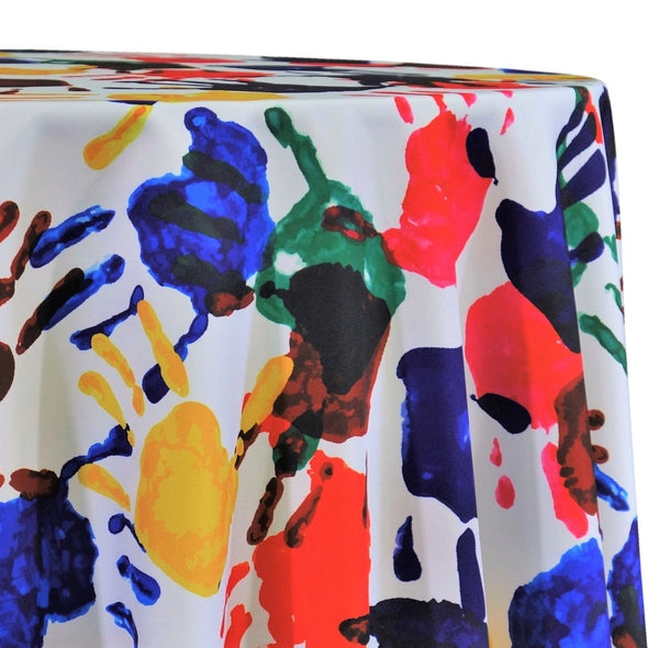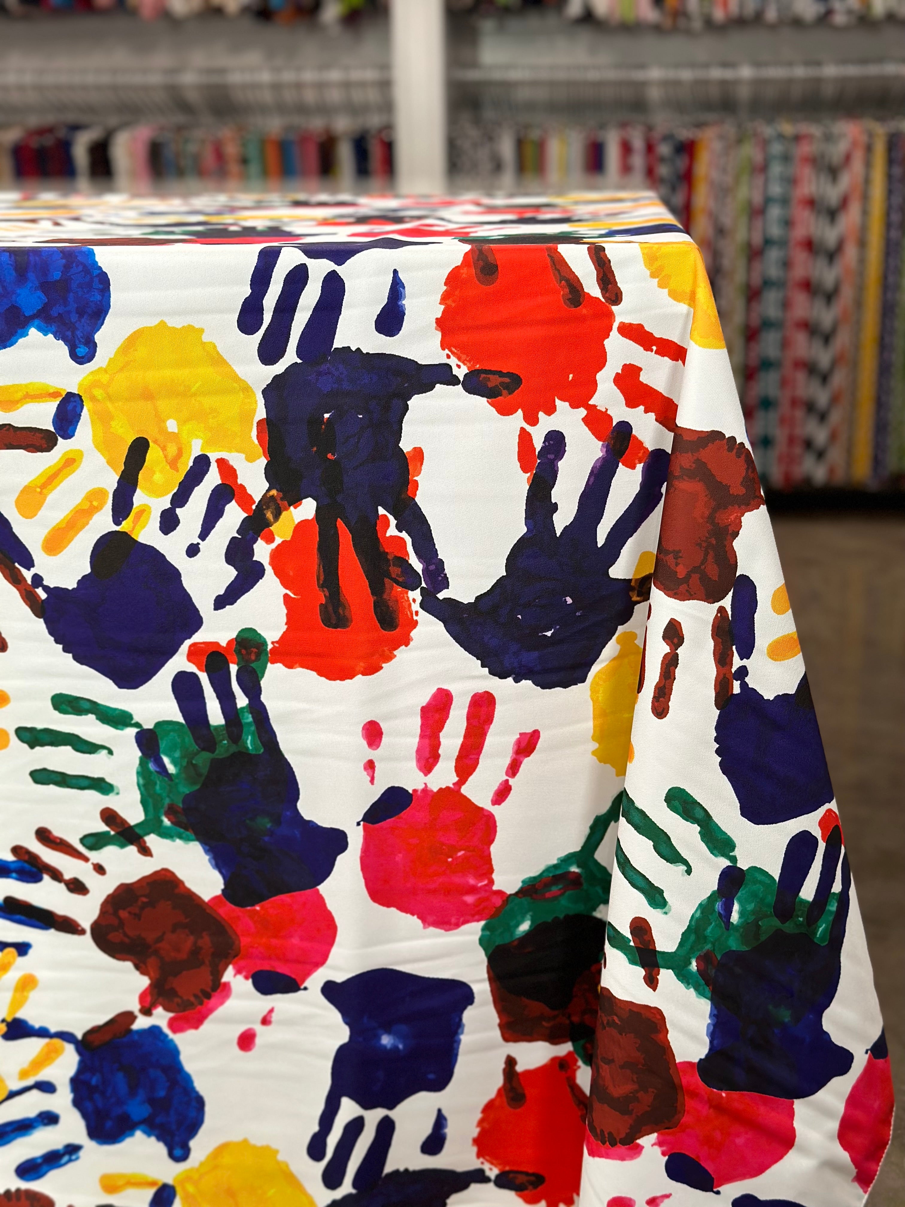 Fabric Collection: This fabric is a polyester base with a multi color "Happy Hands" print throughout.