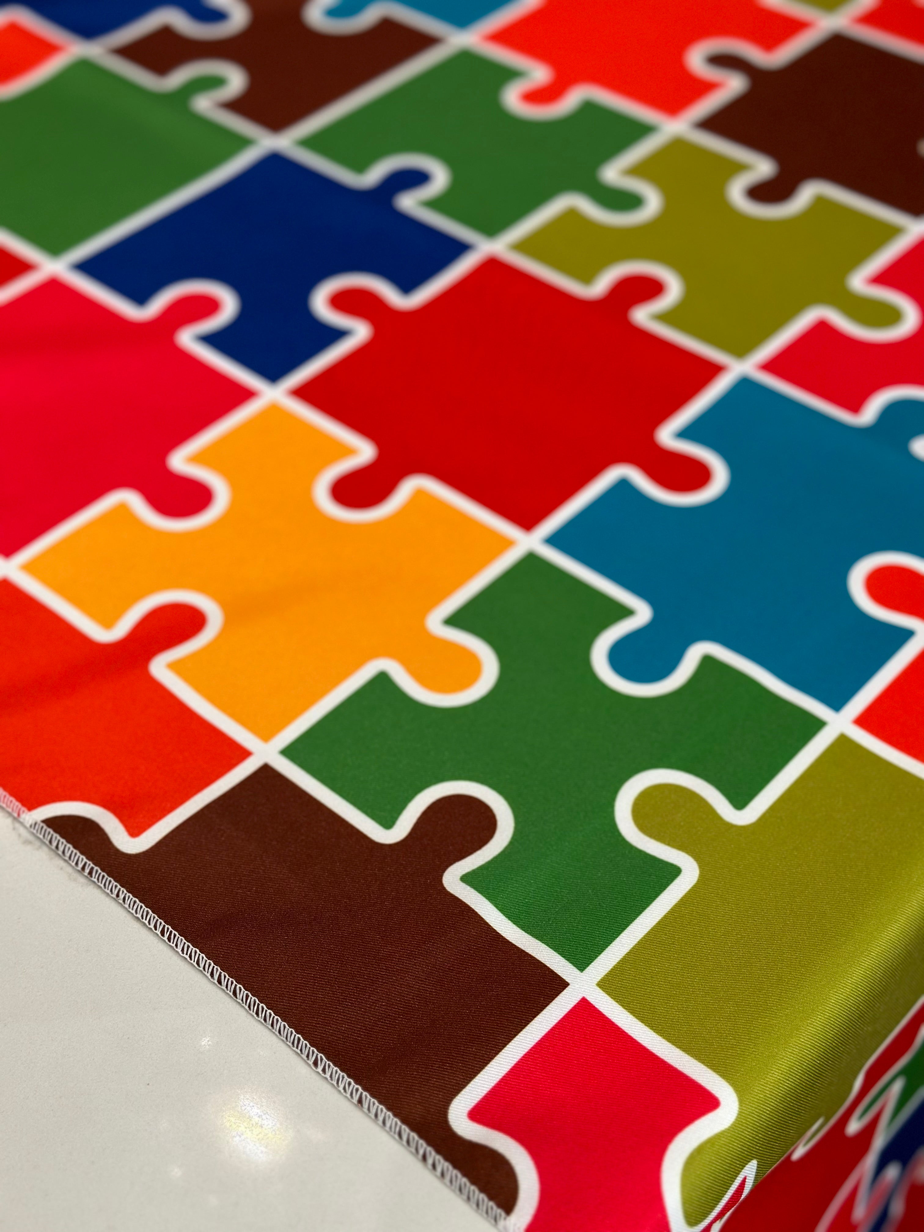 Fabric Collection: This fabric is a Polyester base with our Puzzle print throughout.