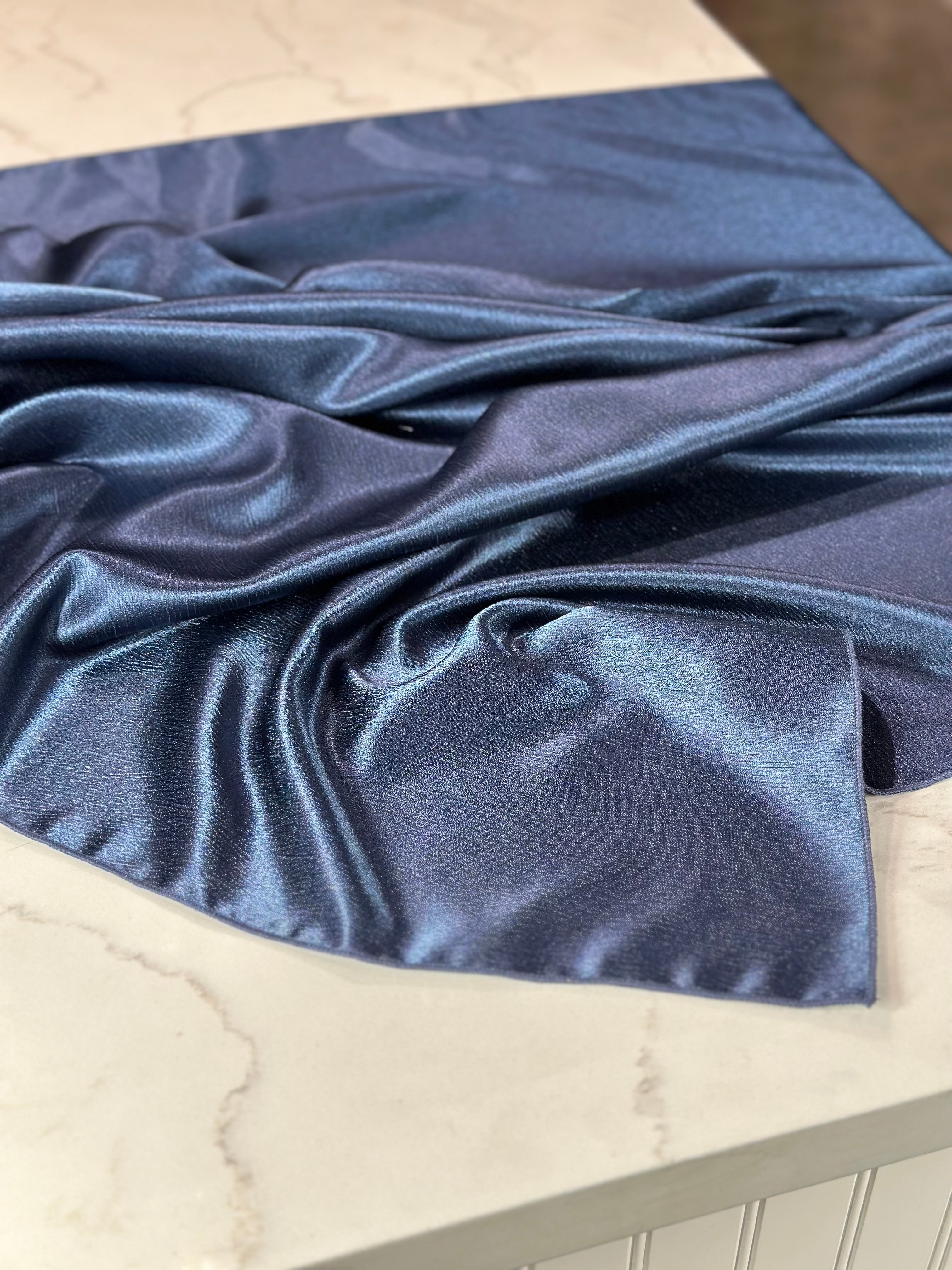 Fabric Collection: This fabric is a Polyester base with a textured shiny(satin finish) design throughout. Design is permanent and will not press or iron out.