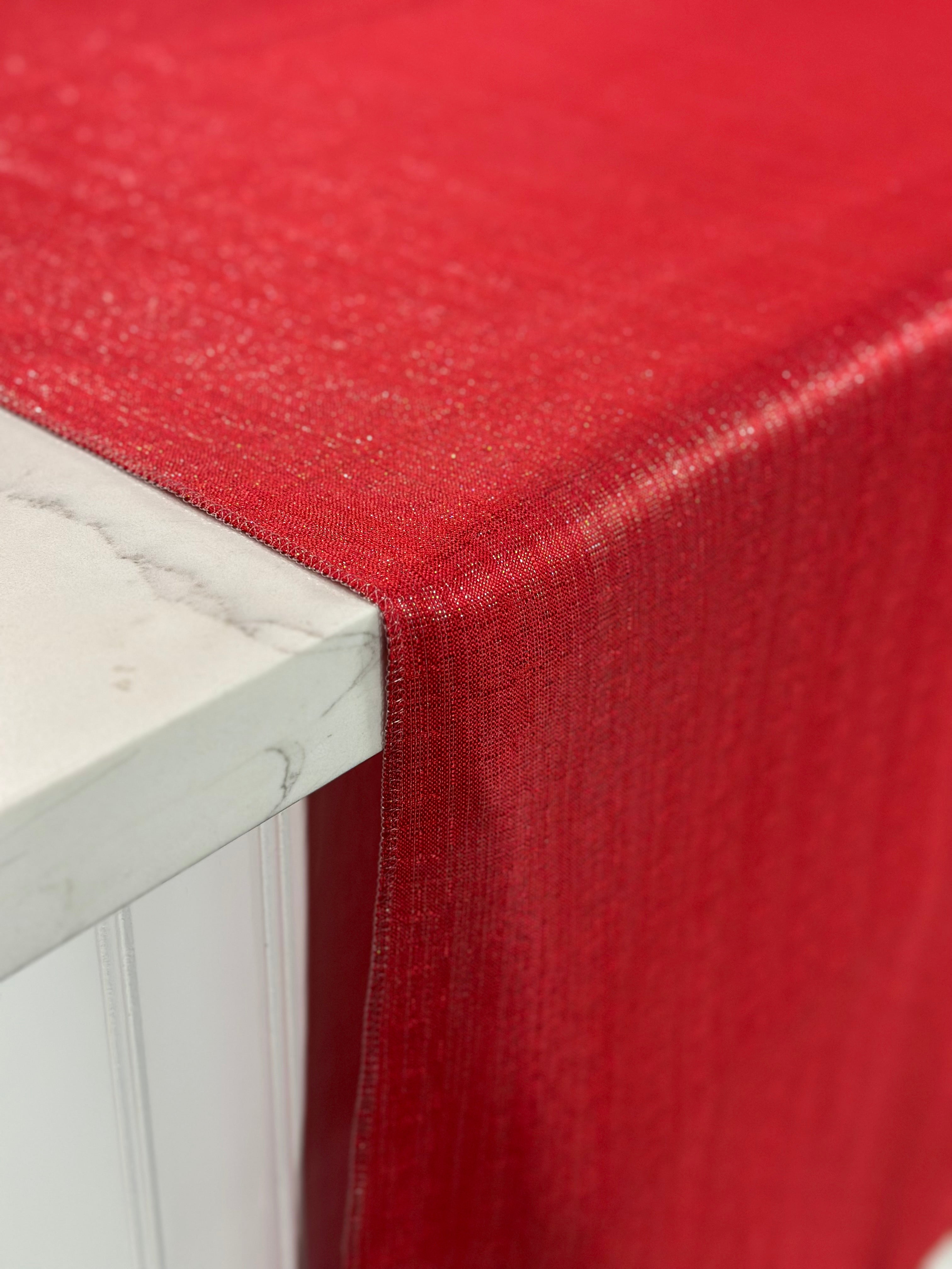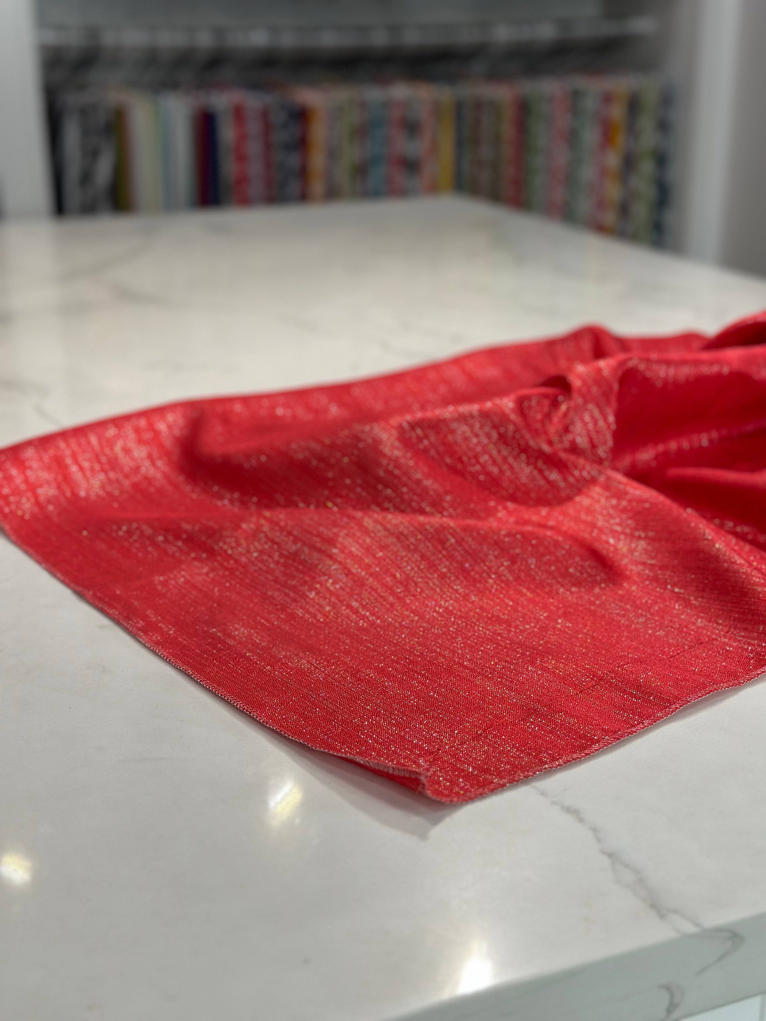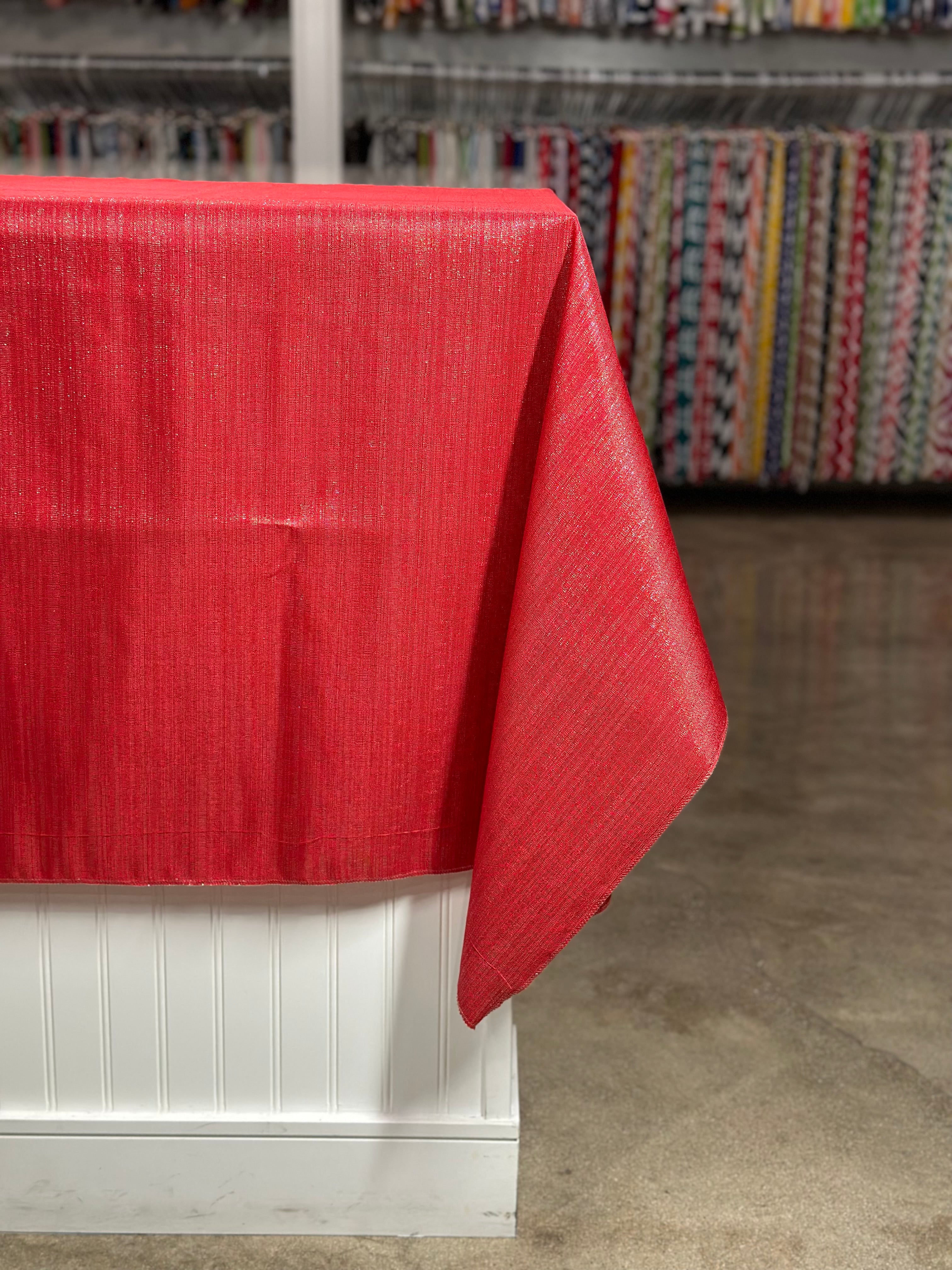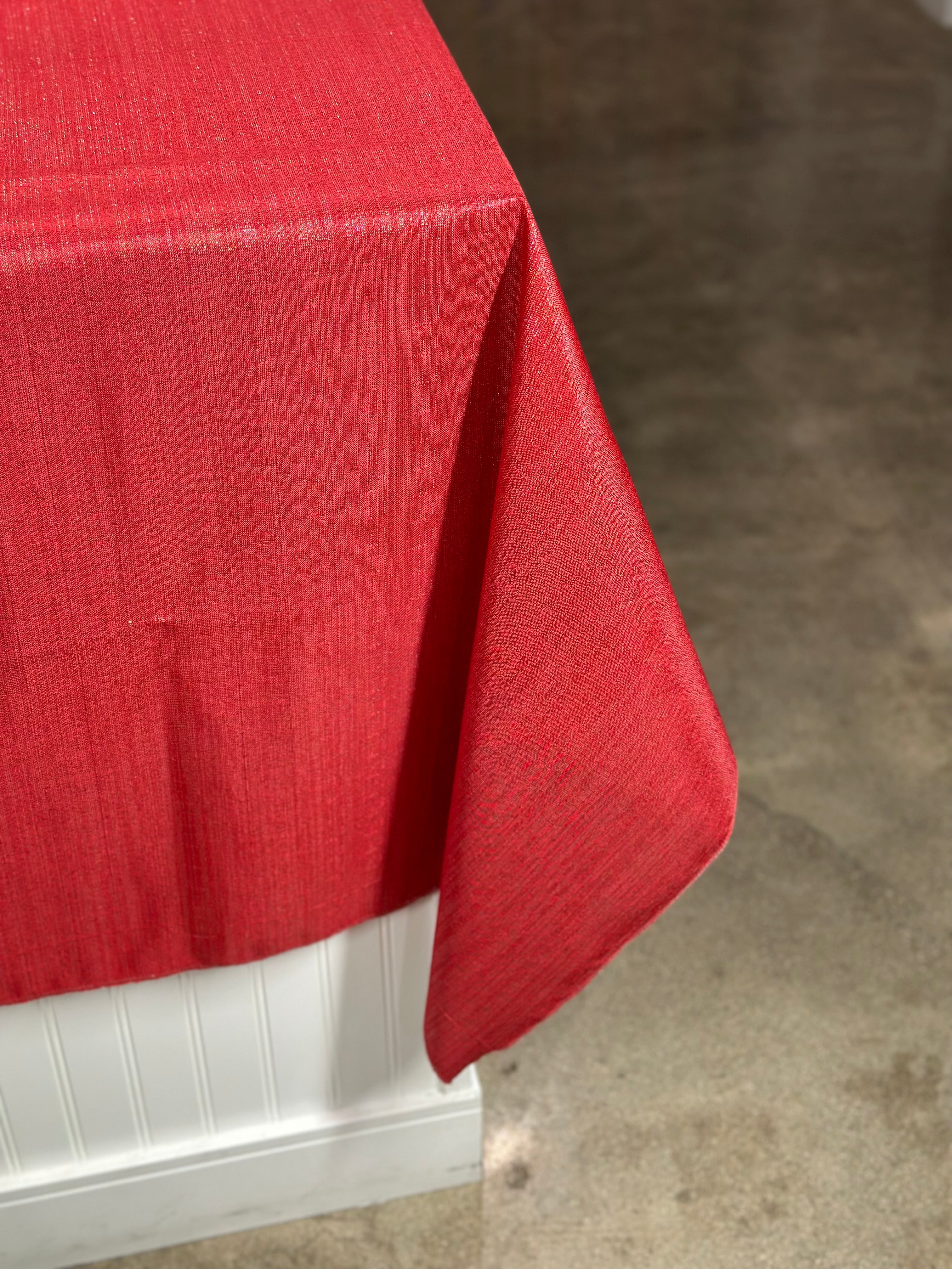 Metallic Burlap Table Linen in Red/Silver
