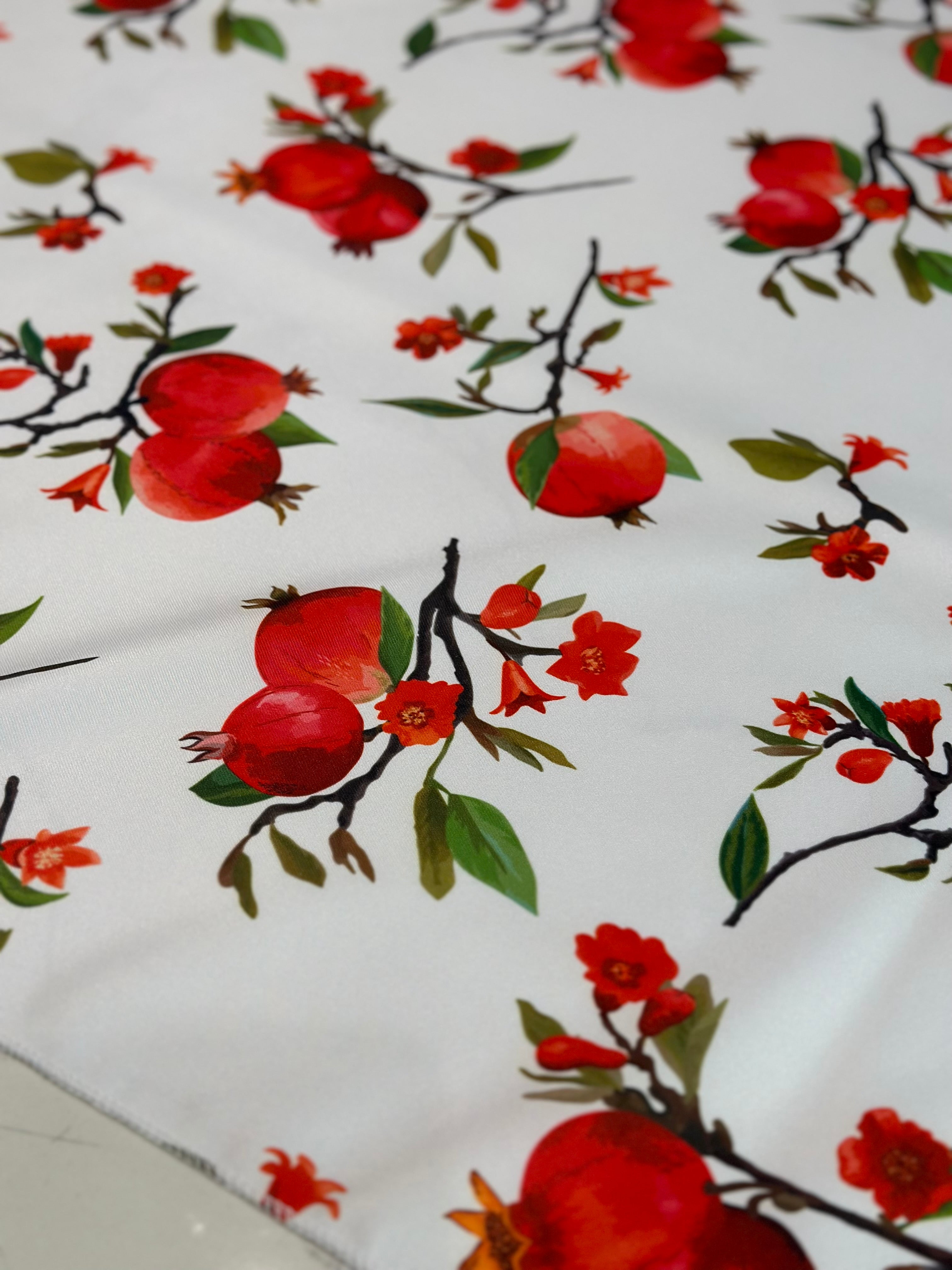 Fabric Collection: This fabric is a polyester base with our Pomegranate print throughout.