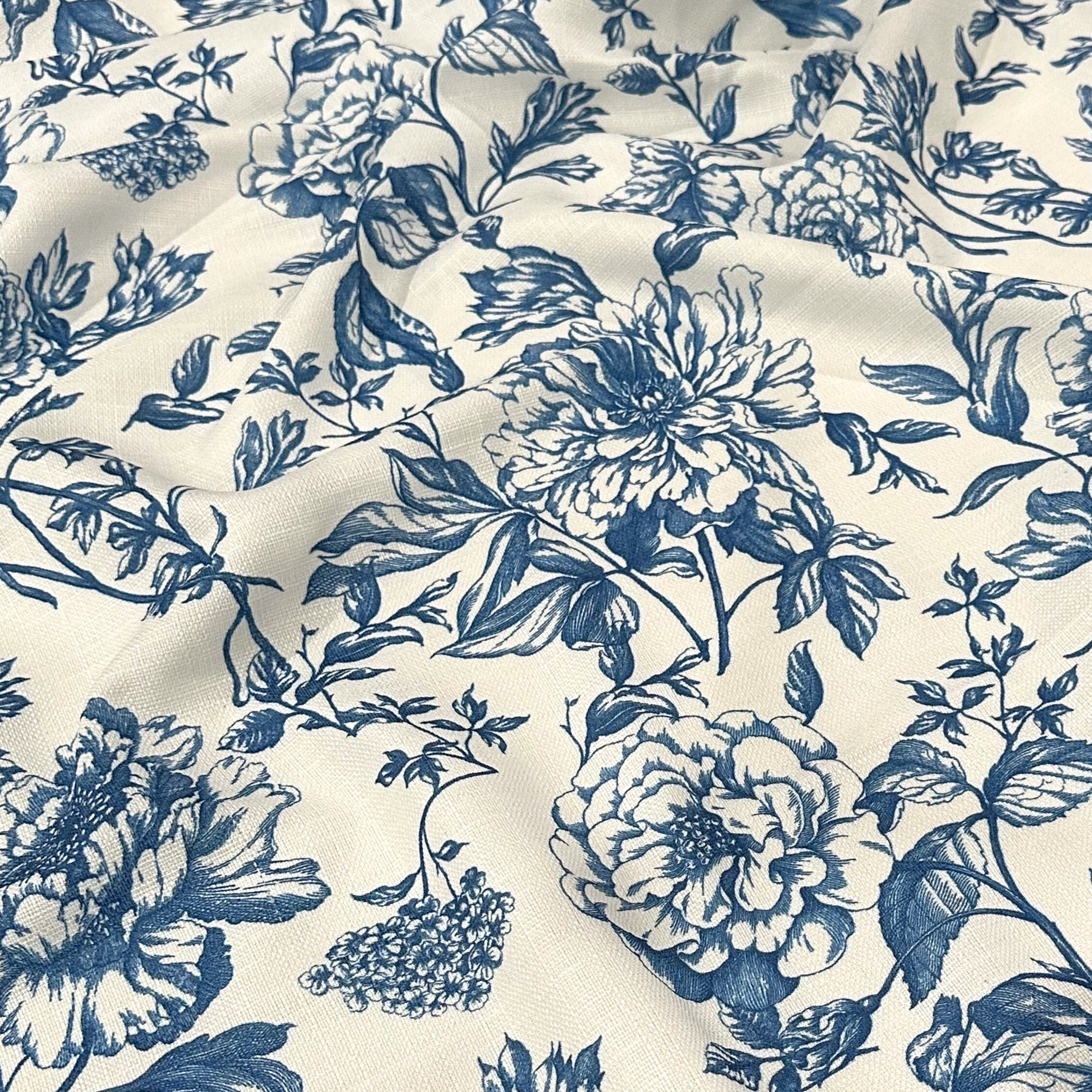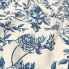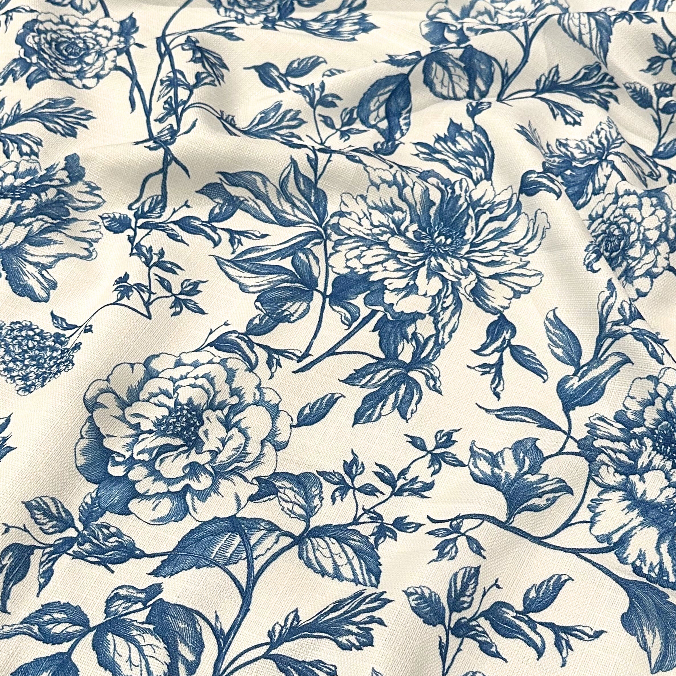 Fabric Collection: Our Artistry Bloom fabric offers a gorgeous toile de jouy vintage floral pattern on a white base. This stunning design is printed on a polyester fabric which also has a rustic slub-like textured finish.