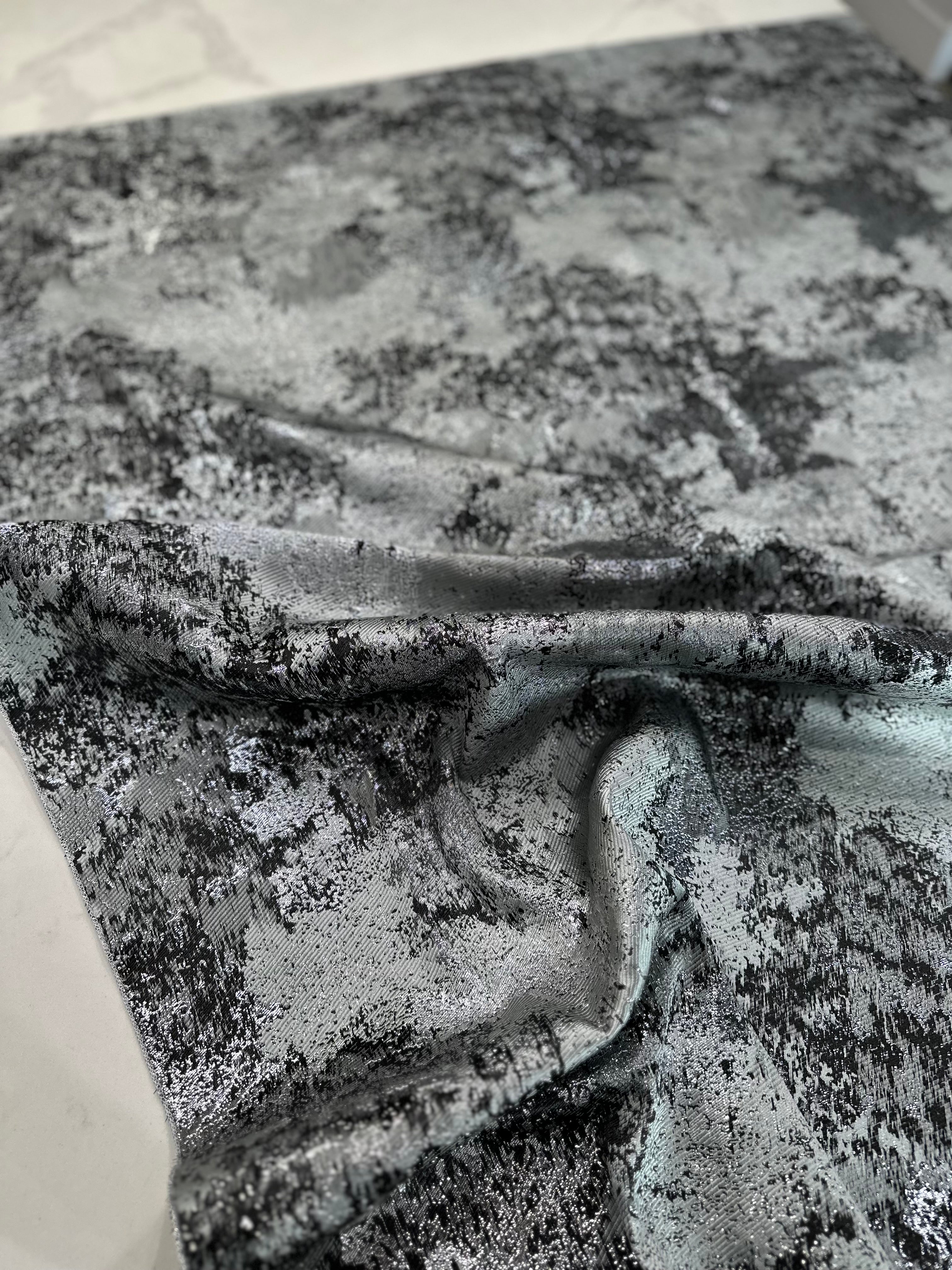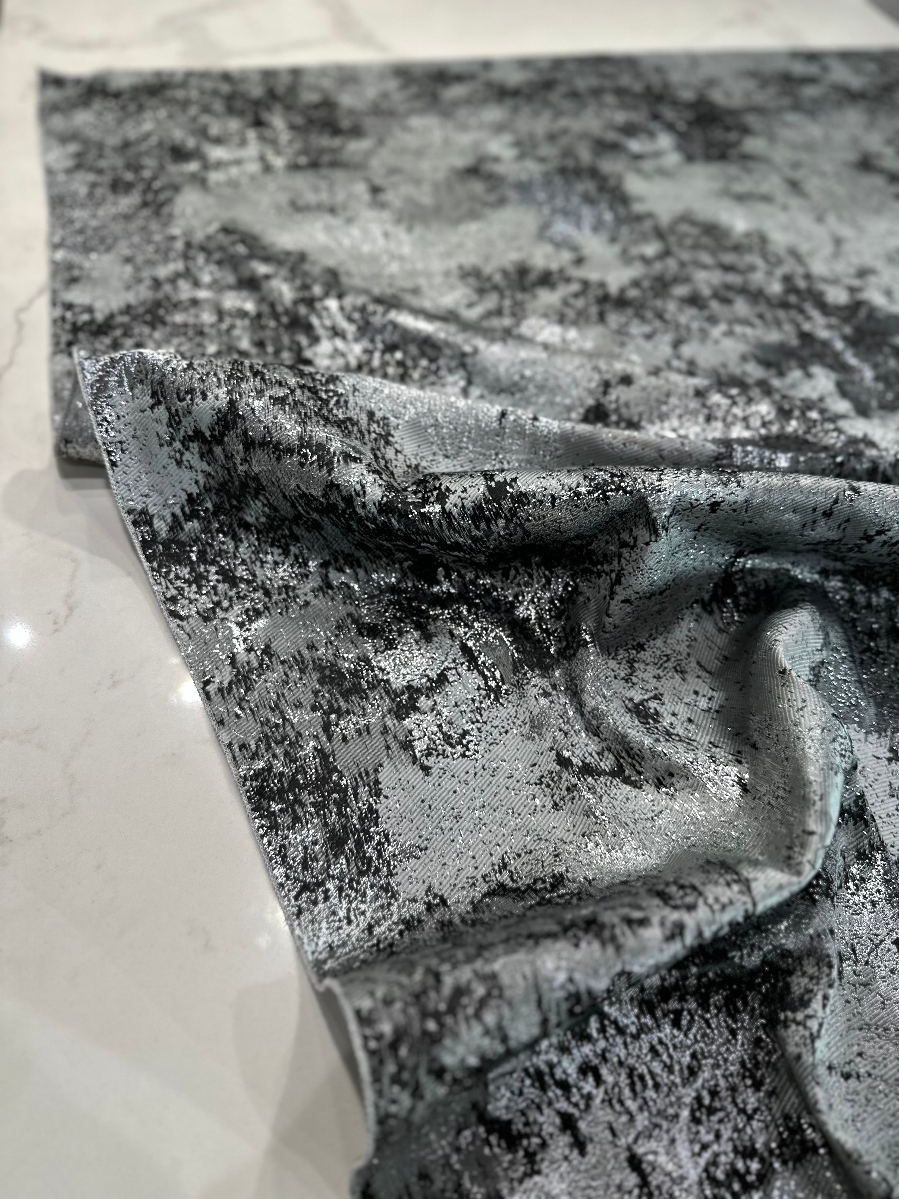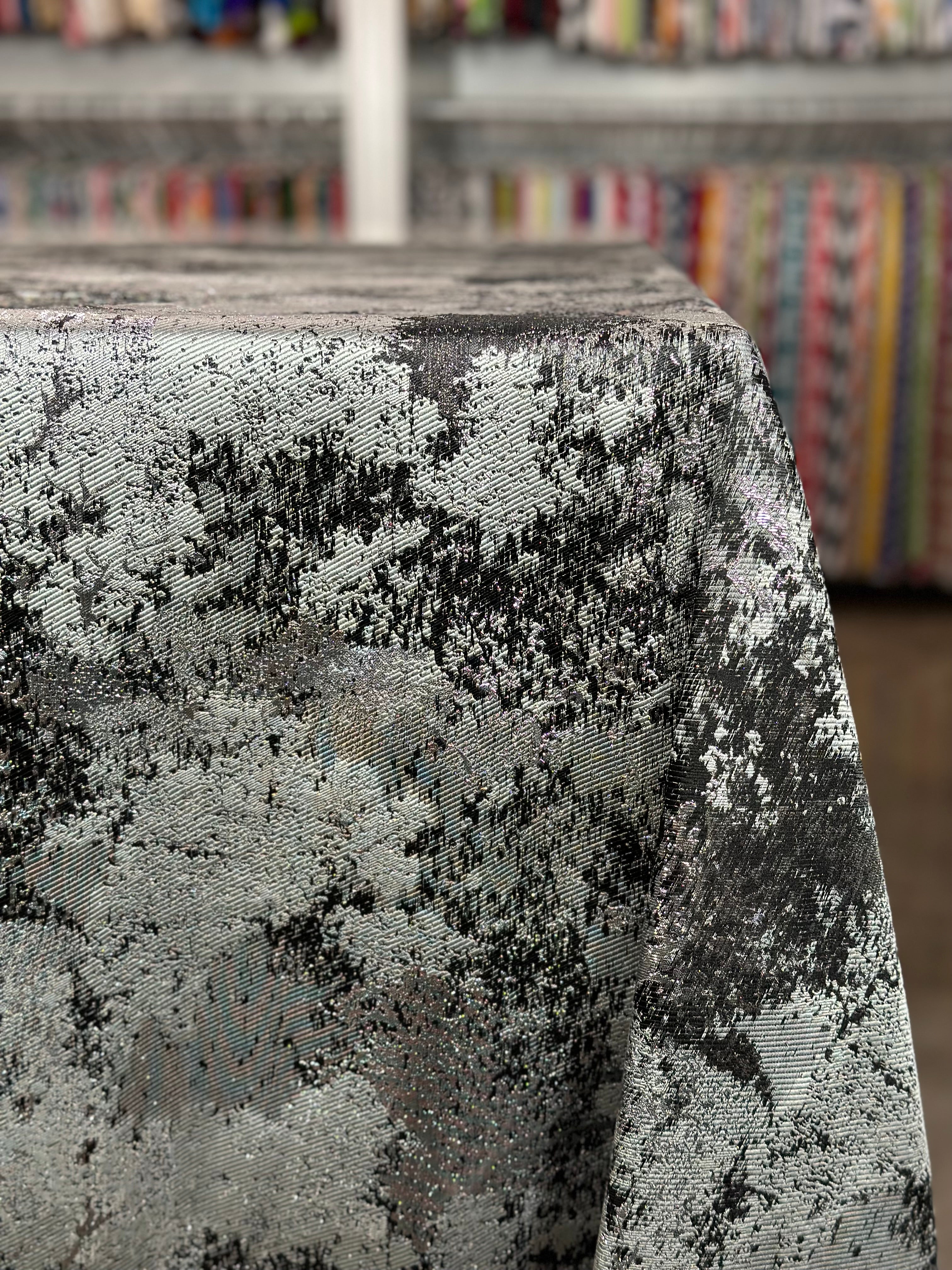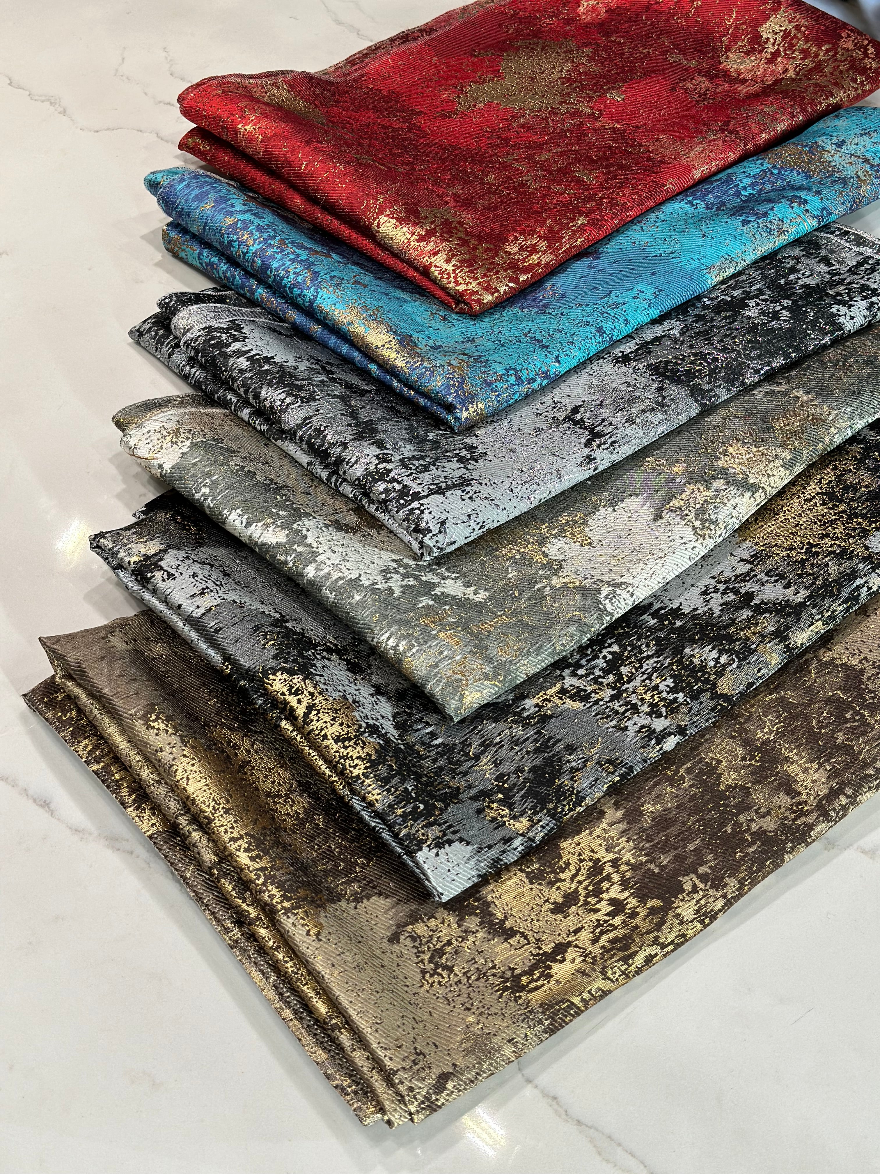 Fabric Collection: This fabric is a multi-color metallic jacquard embroidered with our Cascade print throughout.