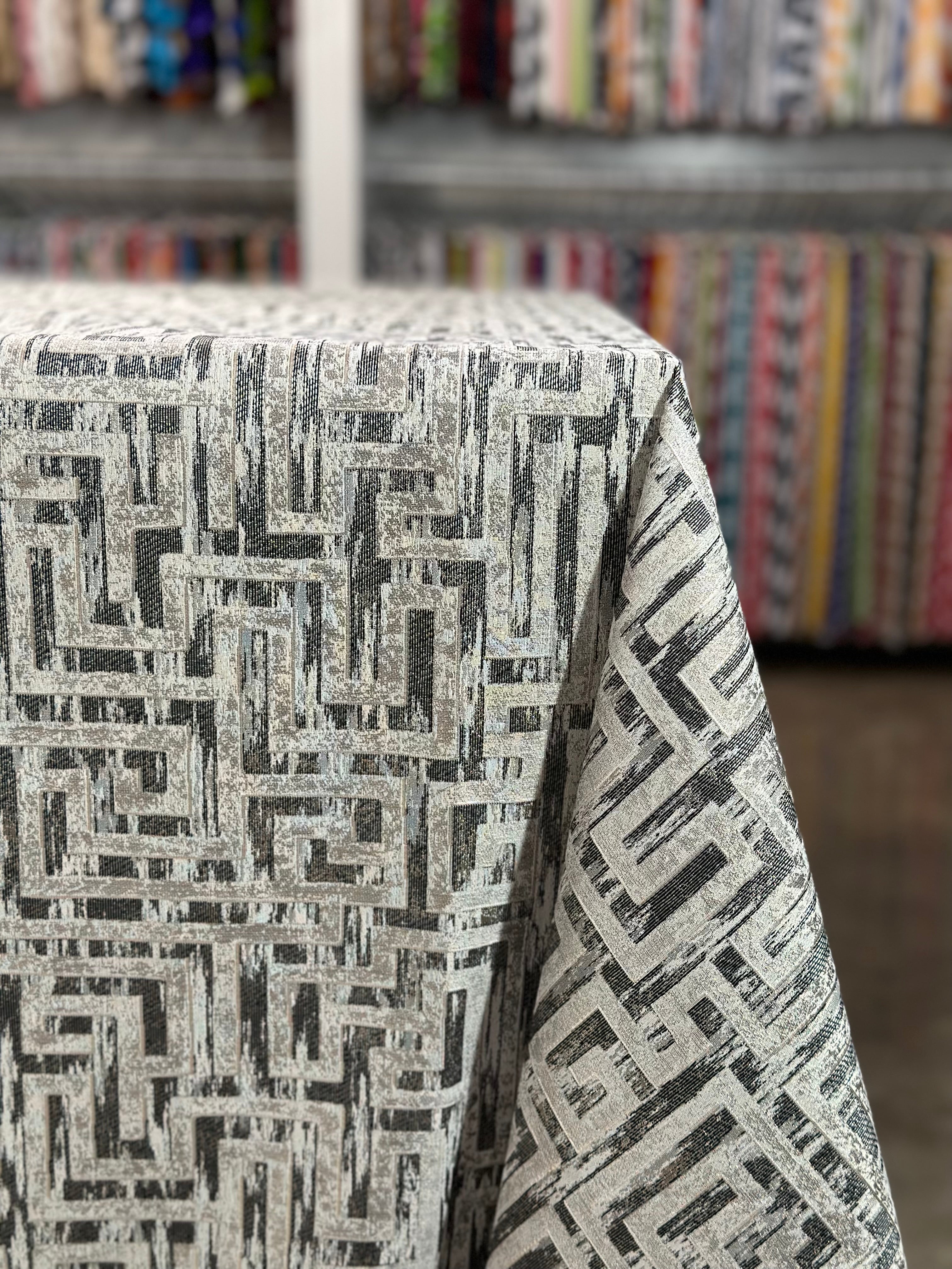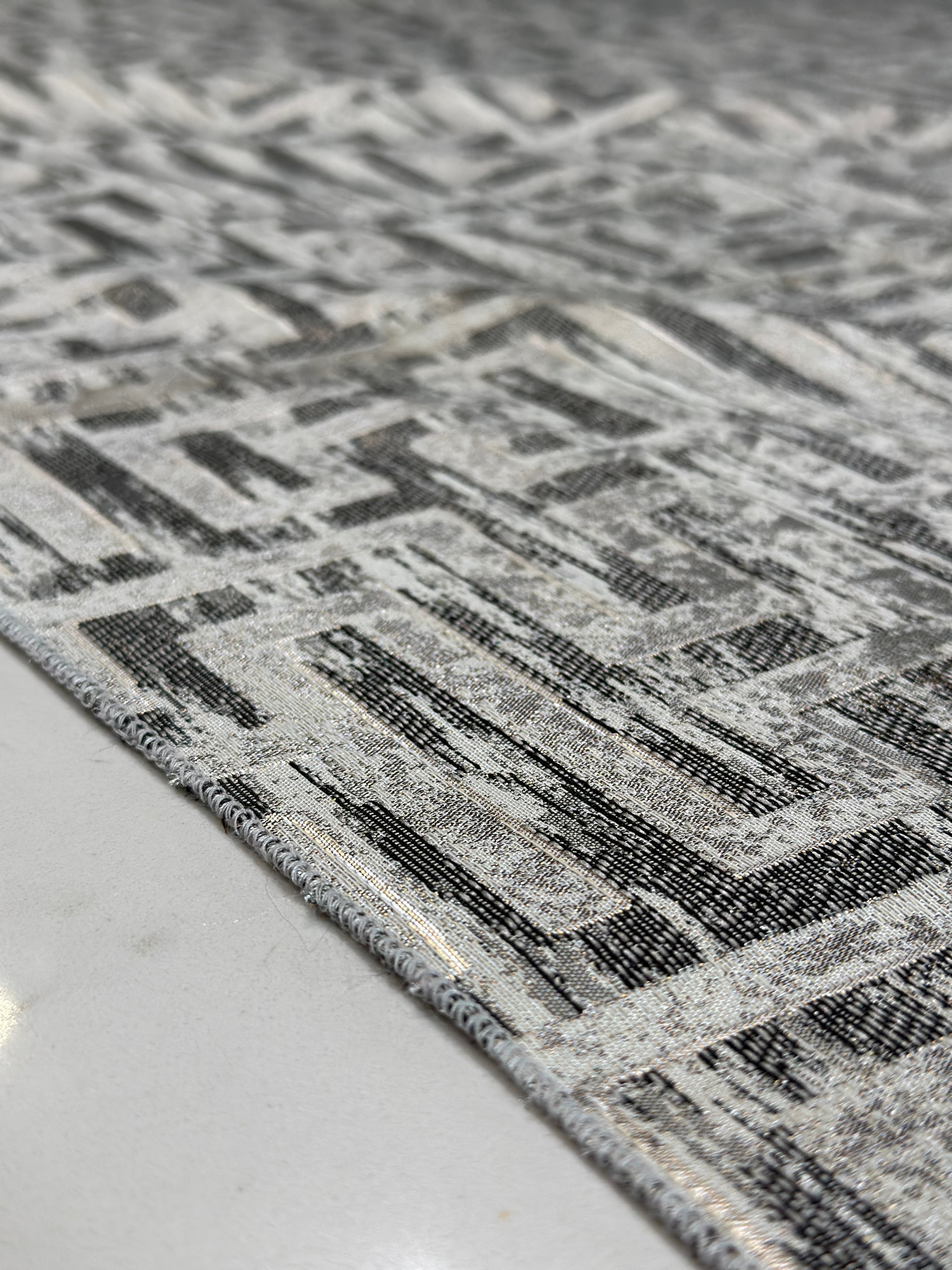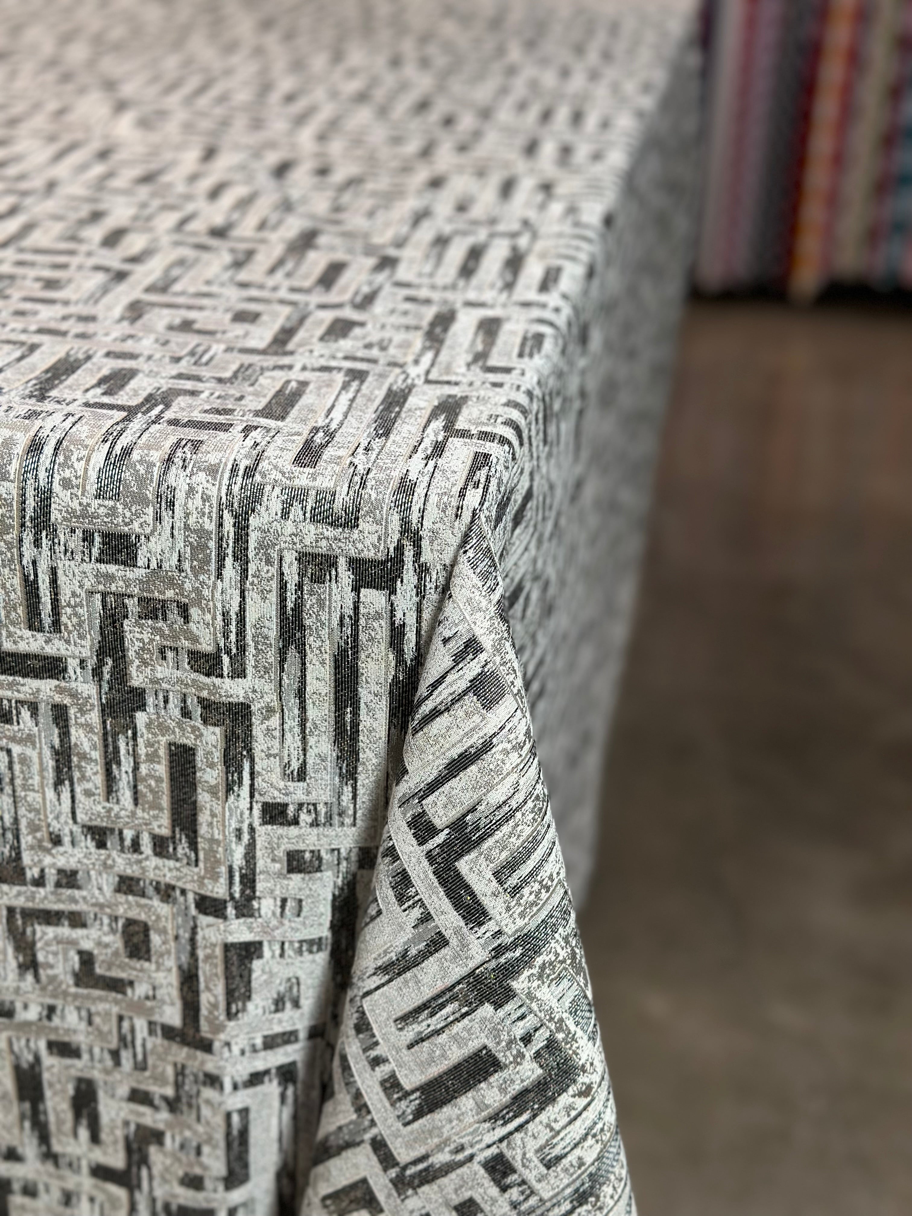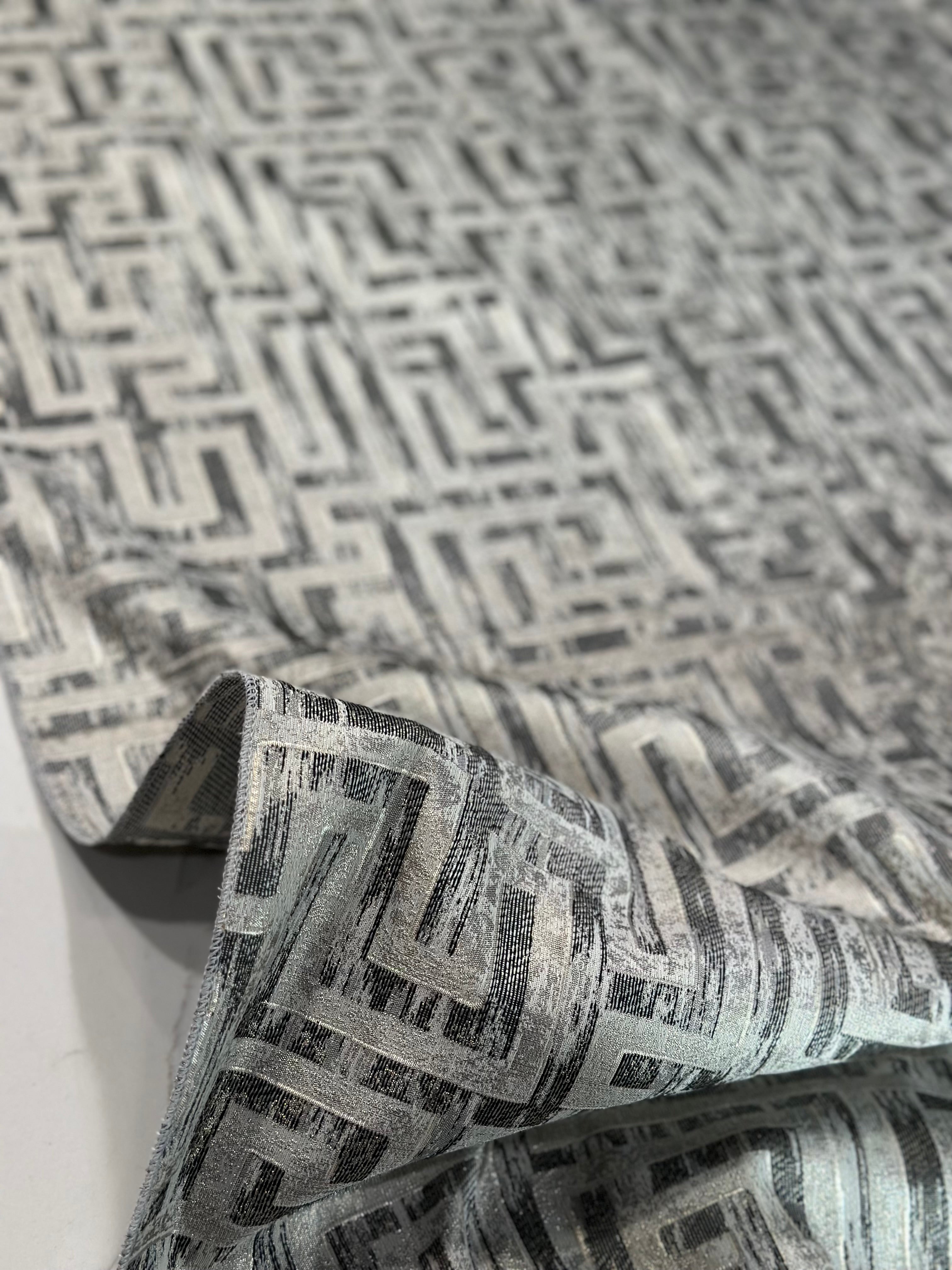 Fabric Collection: This fabric is a Jacquard material with a metallic geometric embroidered design throughout.