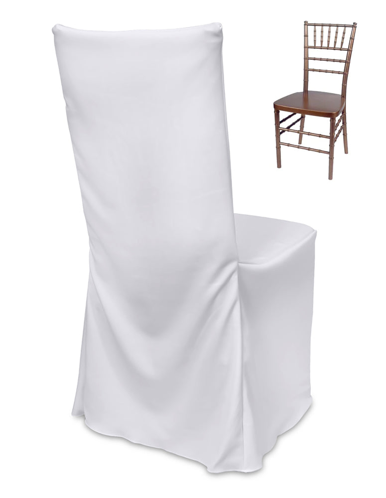 SIZE OPTIONS: This chair cover is made to fit a standard Chivari chair. To request this style cover for a different banquet chair or for custom sizes, please call 1-800-590-9508.