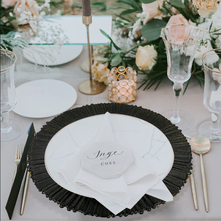 Solar - Glass Charger Plate in Black/Gold (Item # 0309-B)