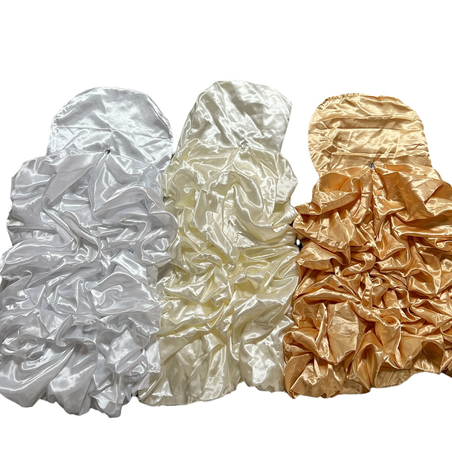 Shiny Satin (Ruffled Back w/ Rhinestone) Chair Covers (3 Colors)