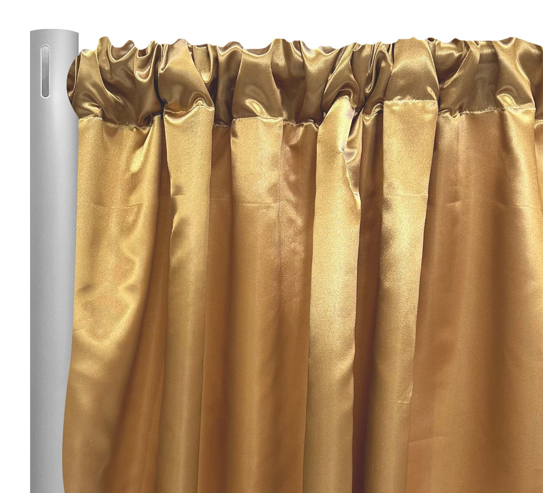 SIZE OPTIONS: Select your desired panel height above. Panels are approx. 58" wide and come standard with a 4" Rod Pocket on top. You can add a bottom Rod Pocket for an additional $5.00 per panel. Our drapes will work on any of our Pipe & Drape systems. Contact us at 800-590-9508 for custom sizing.