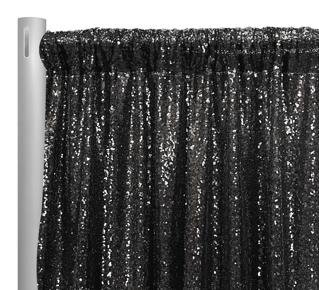 Our Glitz Sequins Drapery Panels add sophisticated bling to any décor. These shimmery sequins drapes make any atmosphere more luxurious and glamorous. This fabric features mesh backing that creates a graceful draping effect compared to stiffer sequin fabrics, which lack the same elegance.