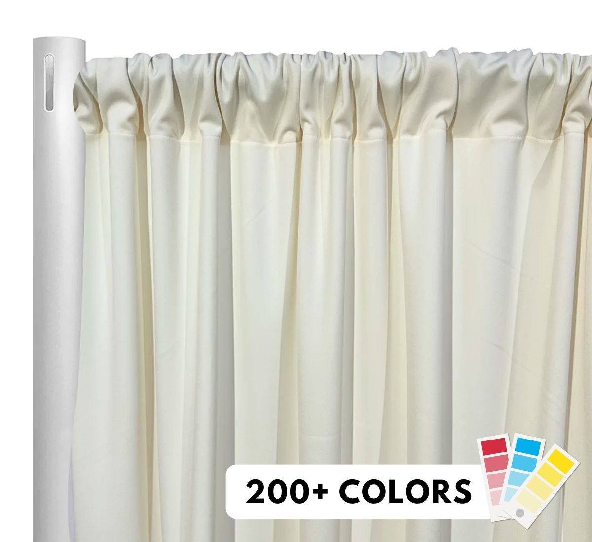 SIZEING: Select your desired panel height above. Panels are approx. 58" wide and come standard with a 4" Rod Pocket on top. You can add a bottom Rod Pocket for an additional $5.00 per panel. Our drapes will work on any of our Pipe & Drape systems. Contact us at 800-590-9508 for custom sizing.