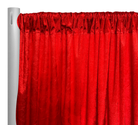 SIZE OPTIONS: Select your desired panel height above. Panels are approx. 58" wide and come standard with a 4" Rod Pocket on top. You can add a bottom Rod Pocket for an additional $5.00 per panel. Our drapes will work on any of our Pipe & Drape systems. Contact us at 800-590-9508 for custom sizing.