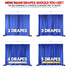 SIZE OPTIONS: Select your desired panel height above. Panels are approx. 58" wide and come standard with a 4" Rod Pocket on top. You can add a bottom Rod Pocket for an additional $5.00 per panel. Our drapes will work on any of our Pipe & Drape systems. Contact us at 800-590-9508 for custom sizing.