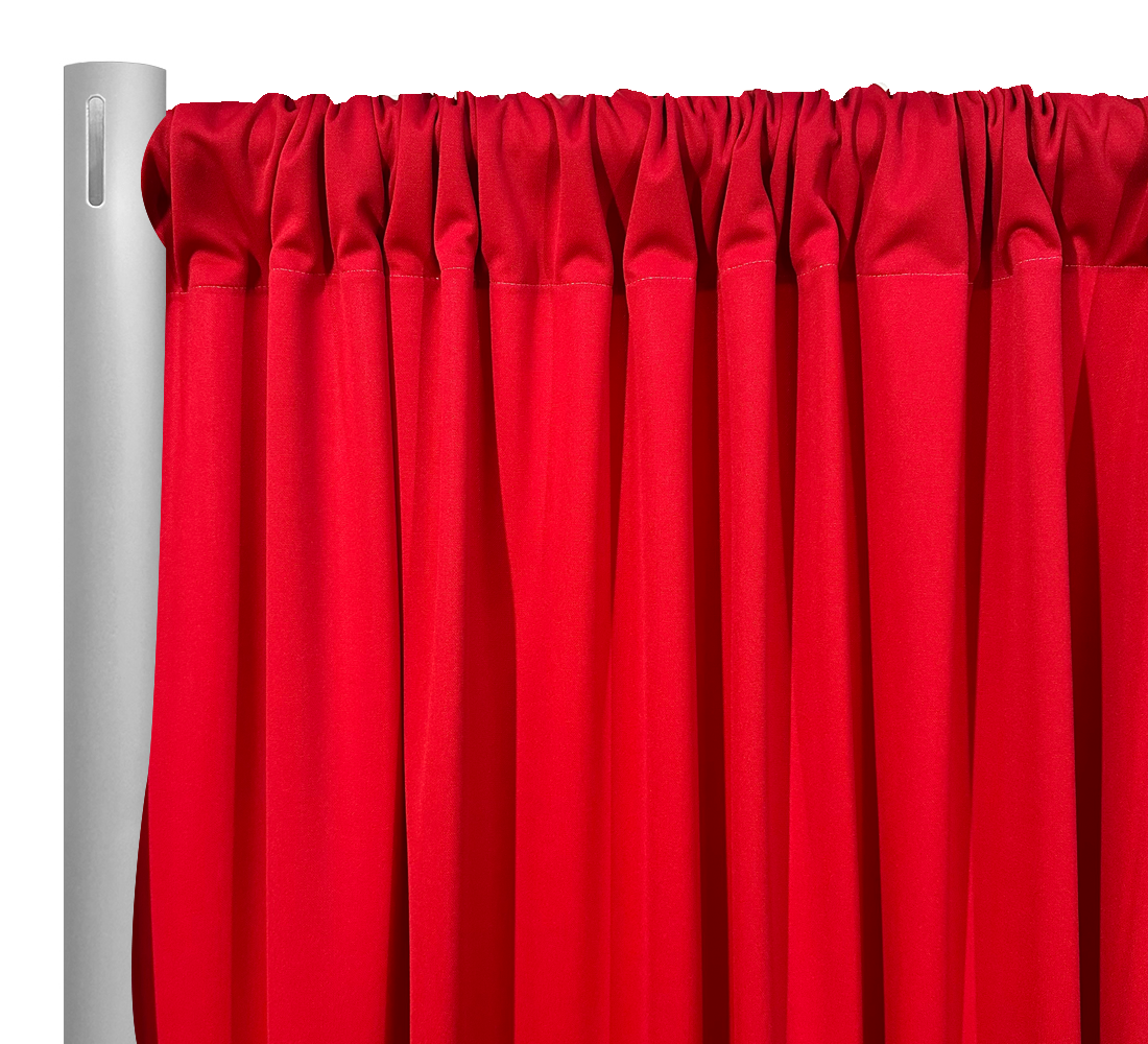 SIZE OPTIONS: Select your desired panel height above. Panels are approx. 58" wide and come standard with a 4" Rod Pocket on top. You can add a bottom Rod Pocket for an additional $5.00 per panel. Our drapes will work on any of our Pipe & Drape systems. Contact us at 800-590-9508 for custom sizing.