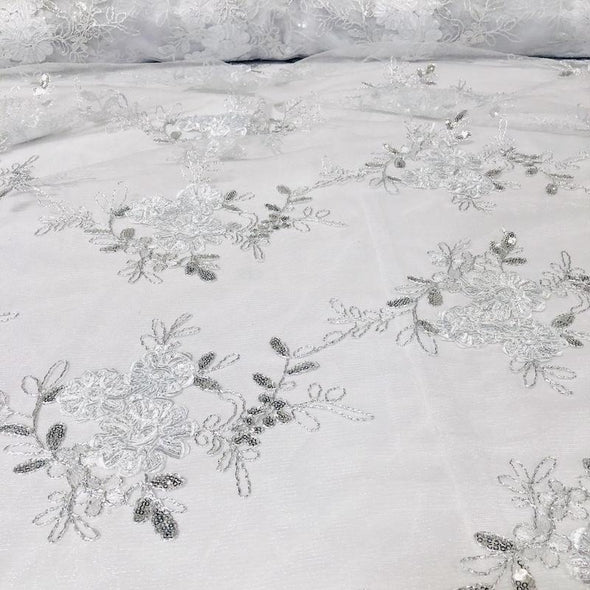 Fabric Collection: This fabric has a mesh/sheer base w/ a floral & sequins embroidery design.