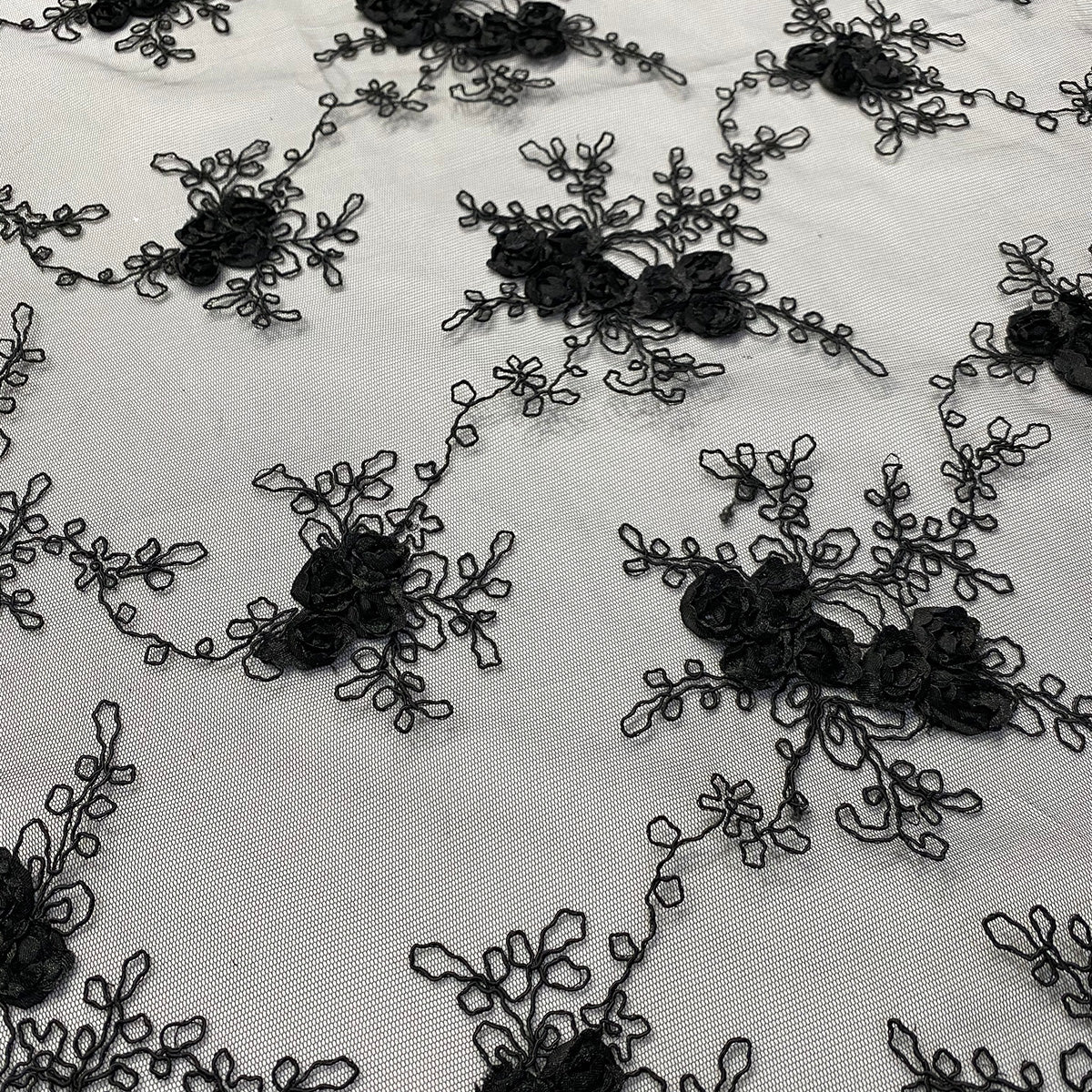 10pcs - Baby Rose Embroidery Table Runner 14"x108" - Black